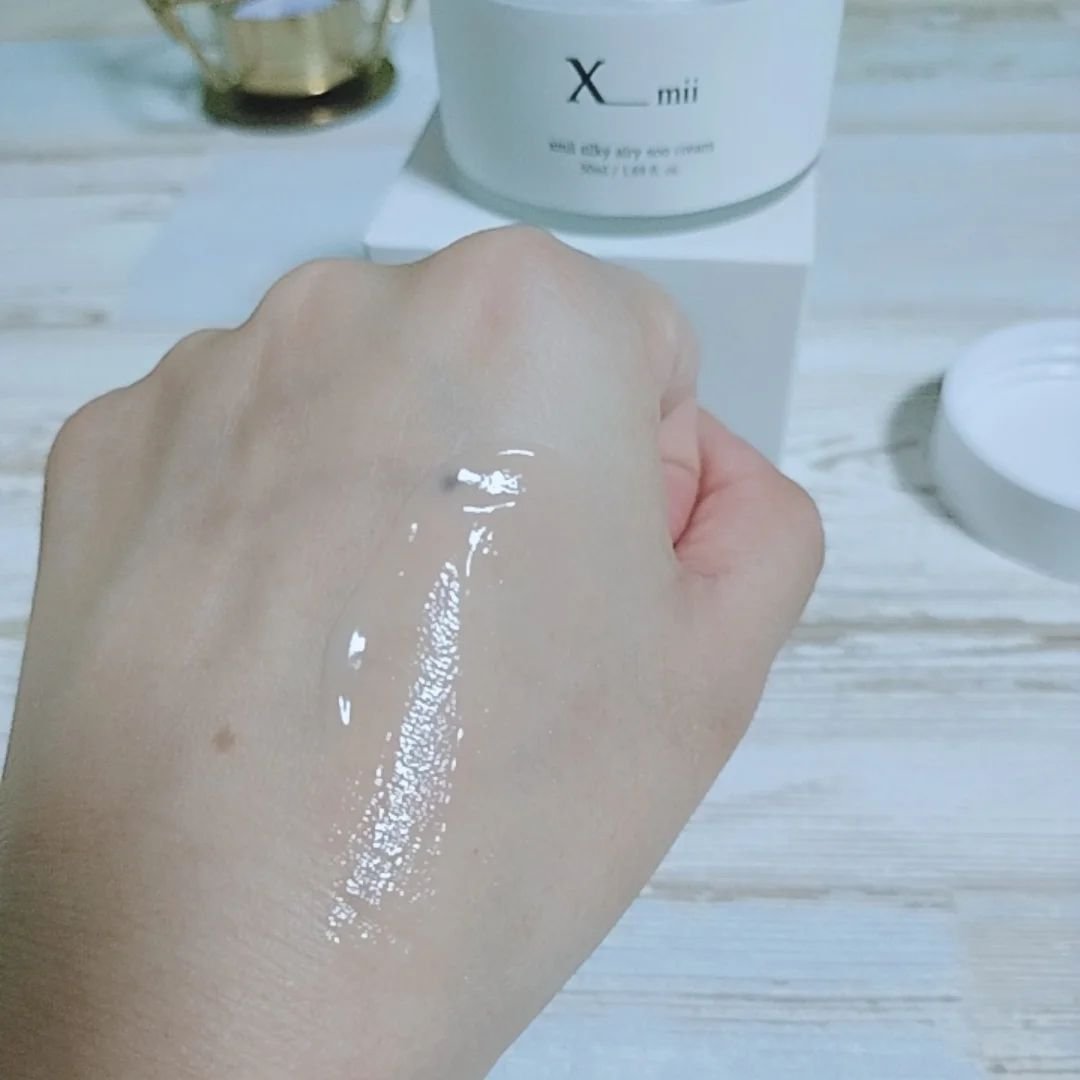 ぷるぷるな水分多めのジェルのようなクリーム なんだか優しい香りがふわっと広がる印象 柔らかいテクスチャーだから摩擦を感じずらく スーッと伸ばせるのが好印象でした! 保湿効果によるツヤ感を感じて嬉しかった◎