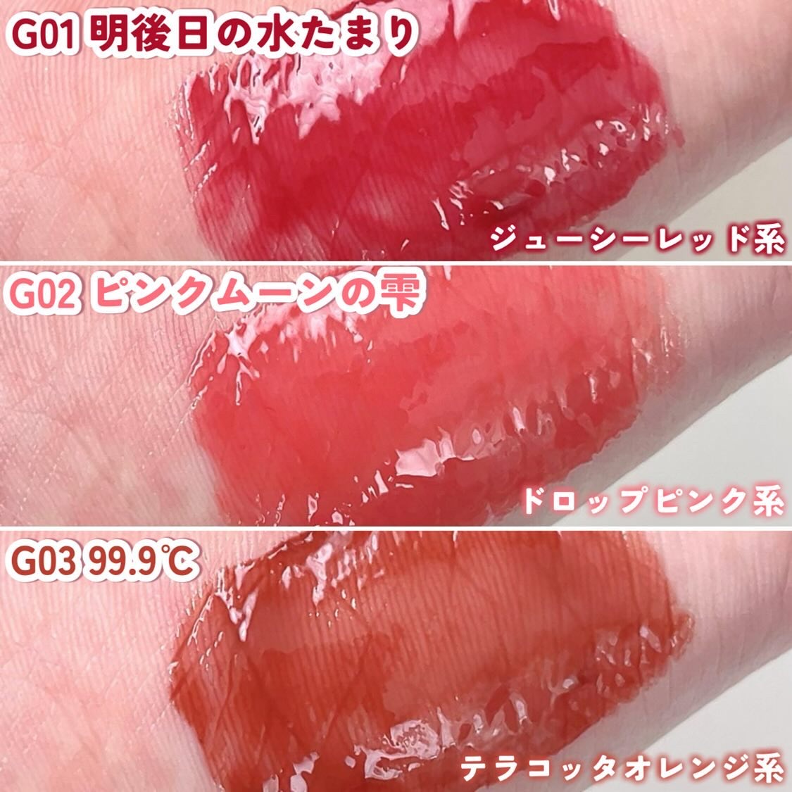 - <G01 明後日の水たまり> テトライソステアリン酸ジペンタエリスリチル、オクチルドデカノール、水添ポリイソブテン、トリ(カプリル酸/カプリン酸)グリセリル、ビスアルキル(C16-18)グリセリルウンデシルジメチコン、パラフィン、ダイマージリノール酸(フィトステリル/イソステアリル/セチル/ステアリル/ベヘニル)、ラウロイルグルタミン酸ジ(オクチルドデシル/フィトステリル/ベヘニル)、合成ワックス、マイクロクリスタリンワックス、ヒドロキシステアリン酸エチルヘキシル、トコフェロール、ホホバ種子油、オリーブ果実油、アーモンド油、ジメチコン、ヒアルロン酸Na、(+/-)ラウロイルアスパラギン酸Na、ラウロイルリシン、塩化亜鉛、酸化チタン、酸化鉄、水酸化Al、硫酸Ba、トリイソステアリン酸イソプロピルチタン、合成フルオロフロゴパイト、赤201、赤202 <G02 ピンクムーンの雫> テトライソステアリン酸ジペンタエリスリチル、オクチルドデカノール、水添ポリイソブテン、トリ(カプリル酸/カプリン酸)グリセリル、ビスアルキル(C16-18)グリセリルウンデシルジメチコン、パラフィン、ダイマージリノール酸(フィトステリル/イソステアリル/セチル/ステアリル/ベヘニル)、ラウロイルグルタミン酸ジ(オクチルドデシル/フィトステリル/ベヘニル)、合成ワックス、マイクロクリスタリンワックス、ヒドロキシステアリン酸エチルヘキシル、トコフェロール、ホホバ種子油、オリーブ果実油、アーモンド油、ジメチコン、ヒアルロン酸Na、(+/-)ラウロイルアスパラギン酸Na、ラウロイルリシン、塩化亜鉛、酸化チタン、酸化鉄、水酸化Al、硫酸Ba、トリイソステアリン酸イソプロピルチタン、合成フルオロフロゴパイト、赤201、赤202 <G03 99.9°C> テトライソステアリン酸ジペンタエリスリチル、オクチルドデカノール、水添ポリイソブテン、トリ(カプリル酸/カプリン酸)グリセリル、ビスアルキル(C16-18)グリセリルウンデシルジメチコン、パラフィン、ダイマージリノール酸(フィトステリル/イソステアリル/セチル/ステアリル/ベヘニル)、ラウロイルグルタミン酸ジ(オクチルドデシル/フィトステリル/ベヘニル)、合成ワックス、マイクロクリスタリンワックス、ヒドロキシステアリン酸エチルヘキシル、トコフェロール、ホホバ種子油、オリーブ果実油、アーモンド油、ジメチコン、ヒアルロン酸Na、(+/-)ラウロイルアスパラギン酸Na、ラウロイルリシン、塩化亜鉛、酸化チタン、酸化鉄、水酸化Al、硫酸Ba、トリイソステアリン酸イソプロピルチタン、合成フルオロフロゴパイト、赤201、赤202 <G04 スパイダー リリー調香師> テトライソステアリン酸ジペンタエリスリチル、オクチルドデカノール、水添ポリイソブテン、トリ(カプリル酸/カプリン酸)グリセリル、ビスアルキル(C16-18)グリセリルウンデシルジメチコン、パラフィン、ダイマージリノール酸(フィトステリル/イソステアリル/セチル/ステアリル/ベヘニル)、ラウロイルグルタミン酸ジ(オクチルドデシル/フィトステリル/ベヘニル)、合成ワックス、マイクロクリスタリンワックス、ヒドロキシステアリン酸エチルヘキシル、リンゴ酸ジイソステアリル、トコフェロール、ホホバ種子油、オリーブ果実油、アーモンド油、ジメチコン、ヒアルロン酸Na、(+/-)(チタン/酸化チタン)焼結物、ラウロイルアスパラギン酸Na、ラウロイルリシン、塩化亜鉛、酸化チタン、酸化鉄、水酸化Al、トリイソステアリン酸イソプロピルチタン、トリエトキシカプリリルシラン、合成フルオロフロゴパイト、青1、赤202 <G05 ピンク ロビンの泉> テトライソステアリン酸ジペンタエリスリチル、オクチルドデカノール、水添ポリイソブテン、トリ(カプリル酸/カプリン酸)グリセリル、ビスアルキル(C16-18)グリセリルウンデシルジメチコン、パラフィン、ダイマージリノール酸(フィトステリル/イソステアリル/セチル/ステアリル/ベヘニル)、ラウロイルグルタミン酸ジ(オクチルドデシル/フィトステリル/ベヘニル)、合成ワックス、マイクロクリスタリンワックス、ヒドロキシステアリン酸エチルヘキシル、リンゴ酸ジイソステアリル、トコフェロール、ホホバ種子油、オリーブ果実油、アーモンド油、ジメチコン、ヒアルロン酸Na、(+/-)(チタン/酸化チタン)焼結物、ラウロイルアスパラギン酸Na、ラウロイルリシン、塩化亜鉛、酸化チタン、酸化鉄、水酸化Al、トリイソステアリン酸イソプロピルチタン、トリエトキシカプリリルシラン、合成フルオロフロゴパイト、青1、赤202 <EX-1 哀愁の亡霊 (限定色)> テトライソステアリン酸ジペンタエリスリチル、オクチルドデカノール、水添ポリイソブテン、トリ(カプリル酸/カプリン酸)グリセリル、ビスアルキル(C16-18)グリセリルウンデシルジメチコン、パラフィン、ダイマージリノール酸(フィトステリル/イソステアリル/セチル/ステアリル/ベヘニル)、ラウロイルグルタミン酸ジ(オクチルドデシル/フィトステリル/ベヘニル)、合成ワックス、マイクロクリスタリンワックス