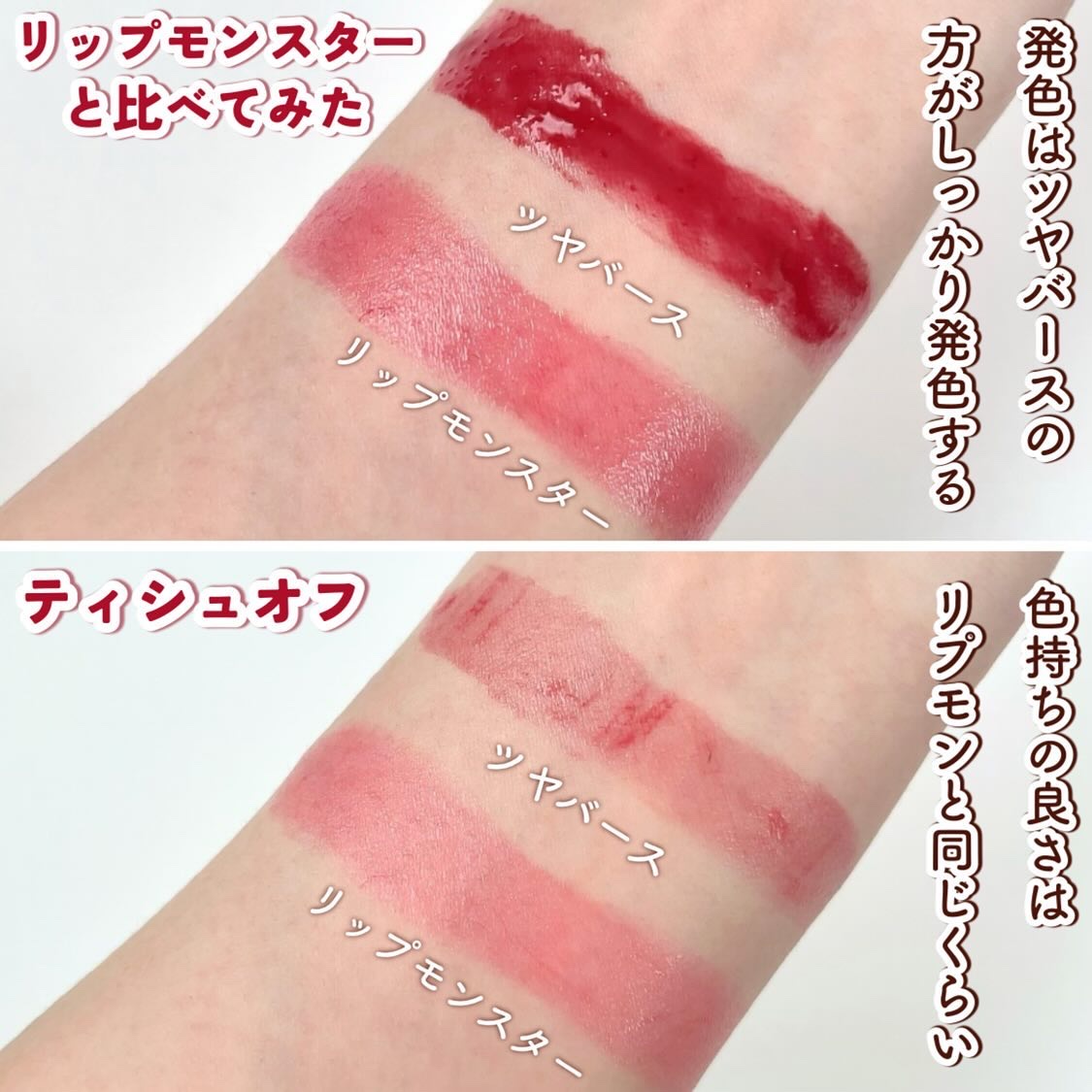 大人気リプモンにとろつやな新タイプが出た!! ので自分的に使えそうな2色買ってきた🥴 彩度高めなクリアレッド❤️ 透け感があるからそこまで派手にならずに使える✨ 仕上がりの艶感はもう美しいの一言に尽きる。 ティッシュオフしたらそのまま塗る艶とは違う面として光る艶が残るし色もまぁまぁ残る❤️❤️