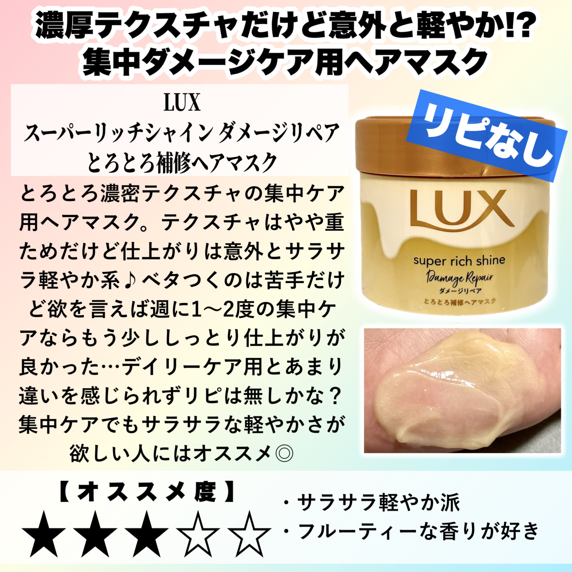 もっと見るおすすめアイテムLUX×ヘアマスク・ヘアパック