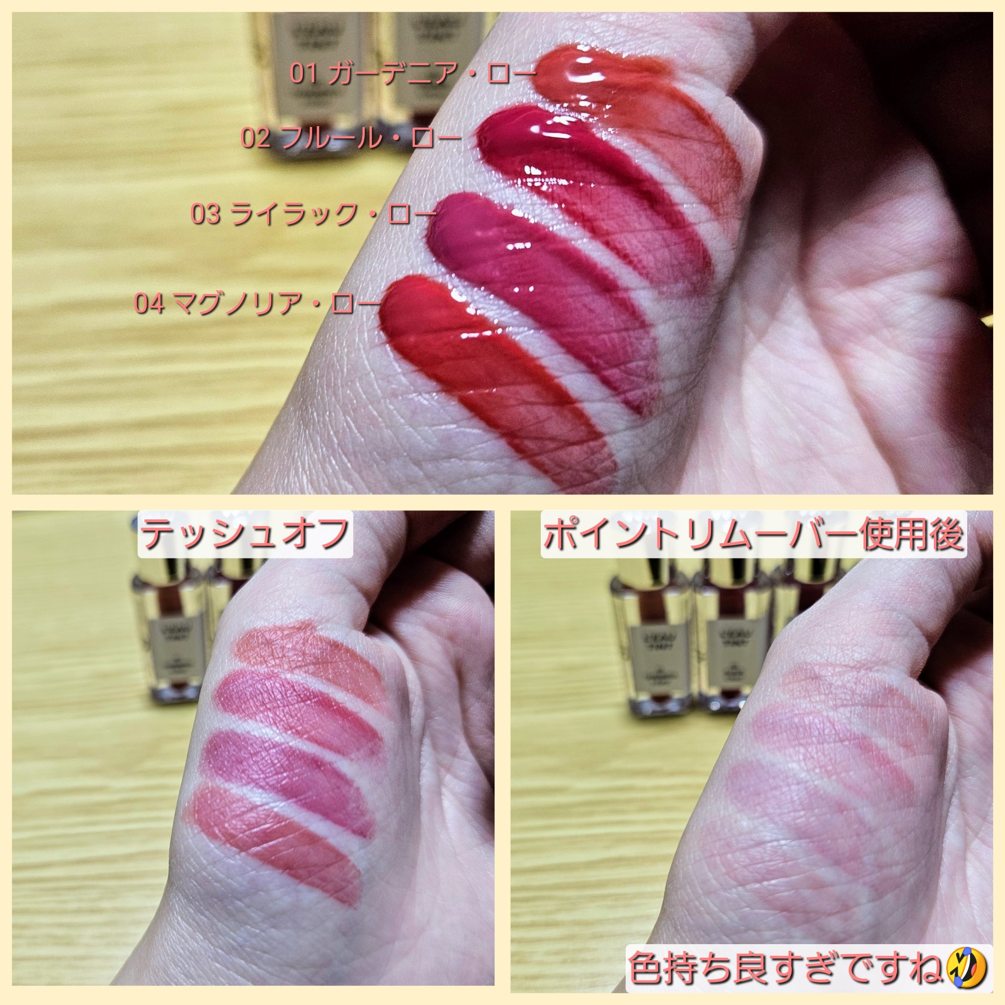 - <01 ガーデニア・ロー> 水、ジフェニルジメチコン、ビスジグリセリルポリアシルアジペート-2、リンゴ酸ジイソステアリル、グリセリン、DPG、セチルPEG/PPG-10/1ジメチコン、1,2-ヘキサンジオール、ポリソルベート60、イソステアリン酸ソルビタン、(アクリル酸ヒドロキシエチル/アクリロイルジメチルタウリンNa)コポリマー、セテアレス-20、スクワラン、酸化チタン、黄5、香料、エチルヘキシルグリセリン、赤227、青1、BG、ヤマザクラ花エキス、モクレン花エキス、ハス花エキス、ダマスクバラ花エキス、クエン酸Na、テトラ(ジ-t-ブチルヒドロキシヒドロケイヒ酸)ペンタエリスリチル、クエン酸、フェノキシエタノール <02 フルール・ロー> 水、ジフェニルジメチコン、ビスジグリセリルポリアシルアジペート-2、リンゴ酸ジイソステアリル、グリセリン、DPG、セチルPEG/PPG-10/1ジメチコン、1,2-ヘキサンジオール、ポリソルベート60、イソステアリン酸ソルビタン、(アクリル酸ヒドロキシエチル/アクリロイルジメチルタウリンNa)コポリマー、セテアレス-20、スクワラン、酸化チタン、香料、エチルヘキシルグリセリン、赤227、黄4、黄5、赤104(1)、青1、BG、ヤマザクラ花エキス、モクレン花エキス、ハス花エキス、ダマスクバラ花エキス、クエン酸Na、テトラ(ジ-t-ブチルヒドロキシヒドロケイヒ酸)ペンタエリスリチル、クエン酸、フェノキシエタノール <03 ライラック・ロー> 水、ジフェニルジメチコン、ビスジグリセリルポリアシルアジペート-2、リンゴ酸ジイソステアリル、グリセリン、DPG、セチルPEG/PPG-10/1ジメチコン、1,2-ヘキサンジオール、ポリソルベート60、イソステアリン酸ソルビタン、(アクリル酸ヒドロキシエチル/アクリロイルジメチルタウリンNa)コポリマー、セテアレス-20、スクワラン、酸化チタン、香料、エチルヘキシルグリセリン、赤227、黄5、青1、BG、ヤマザクラ花エキス、モクレン花エキス、ハス花エキス、ダマスクバラ花エキス、クエン酸Na、テトラ(ジ-t-ブチルヒドロキシヒドロケイヒ酸)ペンタエリスリチル、クエン酸、フェノキシエタノール <04 マグノリア・ロー> 水、ジフェニルジメチコン、ビスジグリセリルポリアシルアジペート-2、リンゴ酸ジイソステアリル、グリセリン、DPG、セチルPEG/PPG-10/1ジメチコン、1,2-ヘキサンジオール、ポリソルベート60、イソステアリン酸ソルビタン、(アクリル酸ヒドロキシエチル/アクリロイルジメチルタウリンNa)コポリマー、セテアレス-20、スクワラン、酸化チタン、香料、エチルヘキシルグリセリン、赤227、黄4、黄5、青1、BG、ヤマザクラ花エキス、モクレン花エキス、ハス花エキス、ダマスクバラ花エキス、クエン酸Na、テトラ(ジ-t-ブチルヒドロキシヒドロケイヒ酸)ペンタエリスリチル、クエン酸、フェノキシエタノール <05 ピオニー・ロー> 水、ジフェニルジメチコン、ビスジグリセリルポリアシルアジペート-2、リンゴ酸ジイソステアリル、グリセリン、DPG、セチルPEG/PPG-10/1ジメチコン、1,2-ヘキサンジオール、ポリソルベート60、イソステアリン酸ソルビタン、(アクリル酸ヒドロキシエチル/アクリロイルジメチルタウリンNa)コポリマー、セテアレス-20、スクワラン、香料、エチルヘキシルグリセリン、黄5、赤227、赤104(1)、BG、ヤマザクラ花エキス、モクレン花エキス、ハス花エキス、ダマスクバラ花エキス、クエン酸Na、テトラ(ジ-t-ブチルヒドロキシヒドロケイヒ酸)ペンタエリスリチル、クエン酸、フェノキシエタノール <06 ピンク・ロー> 水、ジフェニルジメチコン、ビスジグリセリルポリアシルアジペート-2、リンゴ酸ジイソステアリル、グリセリン、DPG、セチルPEG/PPG-10/1ジメチコン、1,2-ヘキサンジオール、ポリソルベート60、イソステアリン酸ソルビタン、(アクリル酸ヒドロキシエチル/アクリロイルジメチルタウリンNa)コポリマー、セテアレス-20、スクワラン、酸化チタン、香料、エチルヘキシルグリセリン、黄5、赤104(1)、赤227、青1、BG、ヤマザクラ花エキス、モクレン花エキス、ハス花エキス、ダマスクバラ花エキス、クエン酸Na、テトラ(ジ-t-ブチルヒドロキシヒドロケイヒ酸)ペンタエリスリチル、クエン酸、フェノキシエタノール <07 ピーチ・ロー> 水、ジフェニルジメチコン、ビスジグリセリルポリアシルアジペート-2、リンゴ酸ジイソステアリル、グリセリン、DPG、セチルPEG/PPG-10/1ジメチコン、1,2-ヘキサンジオール、ポリソルベート60、イソステアリン酸ソルビタン、(アクリル酸ヒドロキシエチル/アクリロイルジメチルタウリンNa)コポリマー、セテアレス-20、スクワラン、酸化チタン、香料、エチルヘキシルグリセリン、黄4、赤227、黄5、赤104(1)、BG、ヤマザクラ花エキス、モクレン花エキス、ハス花エキス、ダマスクバラ花エキス、クエン酸Na、テトラ(ジ-t-ブチルヒドロキシヒドロケイヒ酸)ペンタエリスリチル、クエン酸、フェノキシエタノール <08 スイート・ロー> 水、ジフェニルジメチコン、ビスジグリセリルポリアシルアジペート-2、リンゴ酸ジイソステア