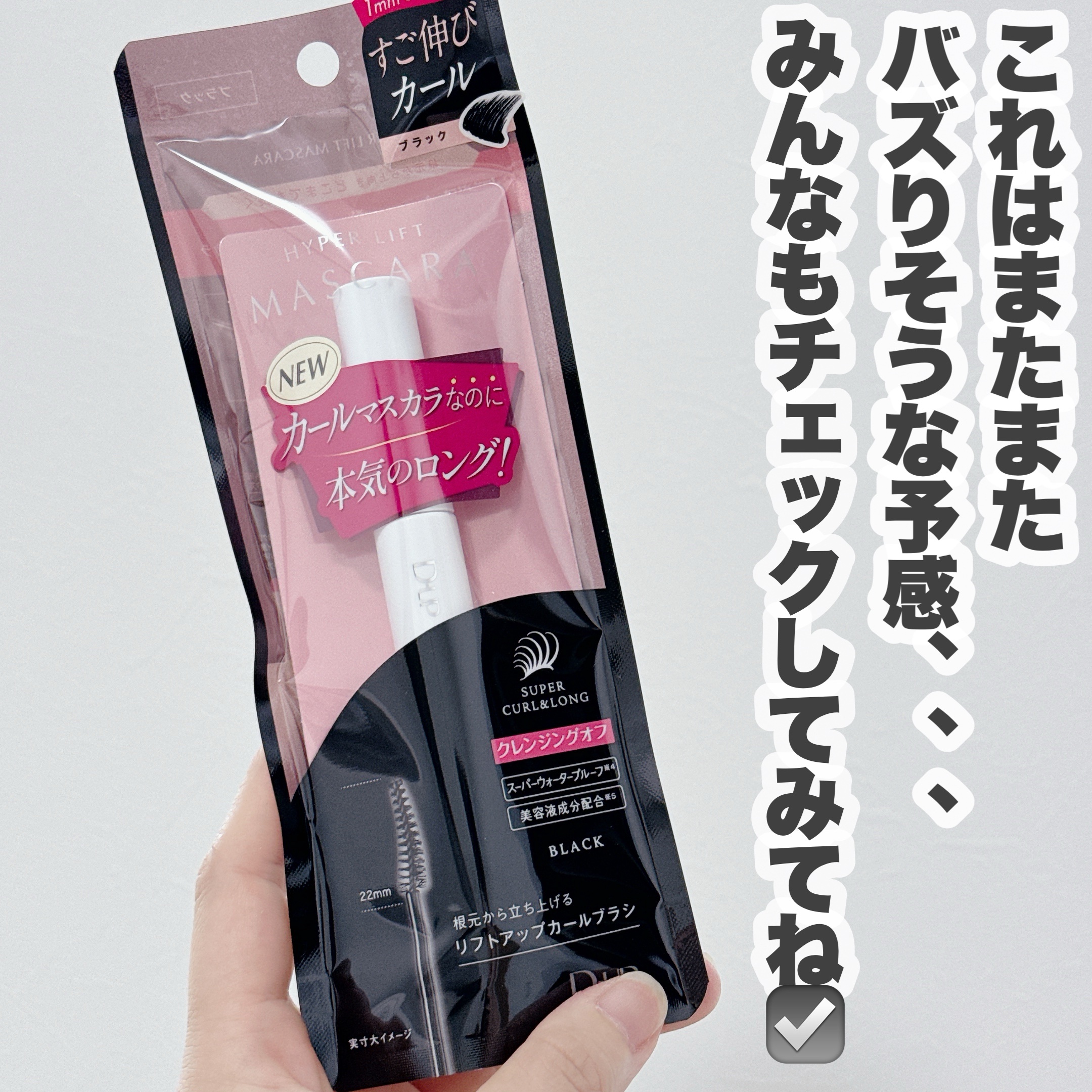 - 2024年10月1日より全国のバラエティショップ、ドラッグストア、公式オンラインショップ(https://store.d-up.co.jp/)にて発売いたします。 『ハイパーリフトマスカラ』は、“カールマスカラで本気のロング”をコンセプトに、ディーアップ史上最強のカールキープ力と驚きの長さを追求した新しいマスカラです。 ■カールキープ力とロング感の両立 カールキープ力の高いマスカラは、通常ワックスや被膜材でカールをキープしますが、同時に「ロング感」や「ダマの無い仕上がり」を両立させることは難しいとされてきました。ハイパーリフトマスカラは、あと1㎜長く、もっとなめらかにするための改良を重ね、「カールキープ力」と「ロング」どちらも限界レベルまで欲張った新処方です。 ■1㎜でも長く!「すご伸びカール」 ロングの秘密は、なめらかで“伸び感”のあるカール液。ファイバーを包み込みながら素早く毛先まで絡み、美しくスッと長いまつげを実現します。 さらに長さを出すため「まつげの根元」にも着目し、生え際から持ち上げて伸ばす、コンパクトなリフトアップカールブラシを新たに採用しました。 『ハイパーリフトマスカラ』で、想像を超える“新次元の上向きまつげ”を体験してください。