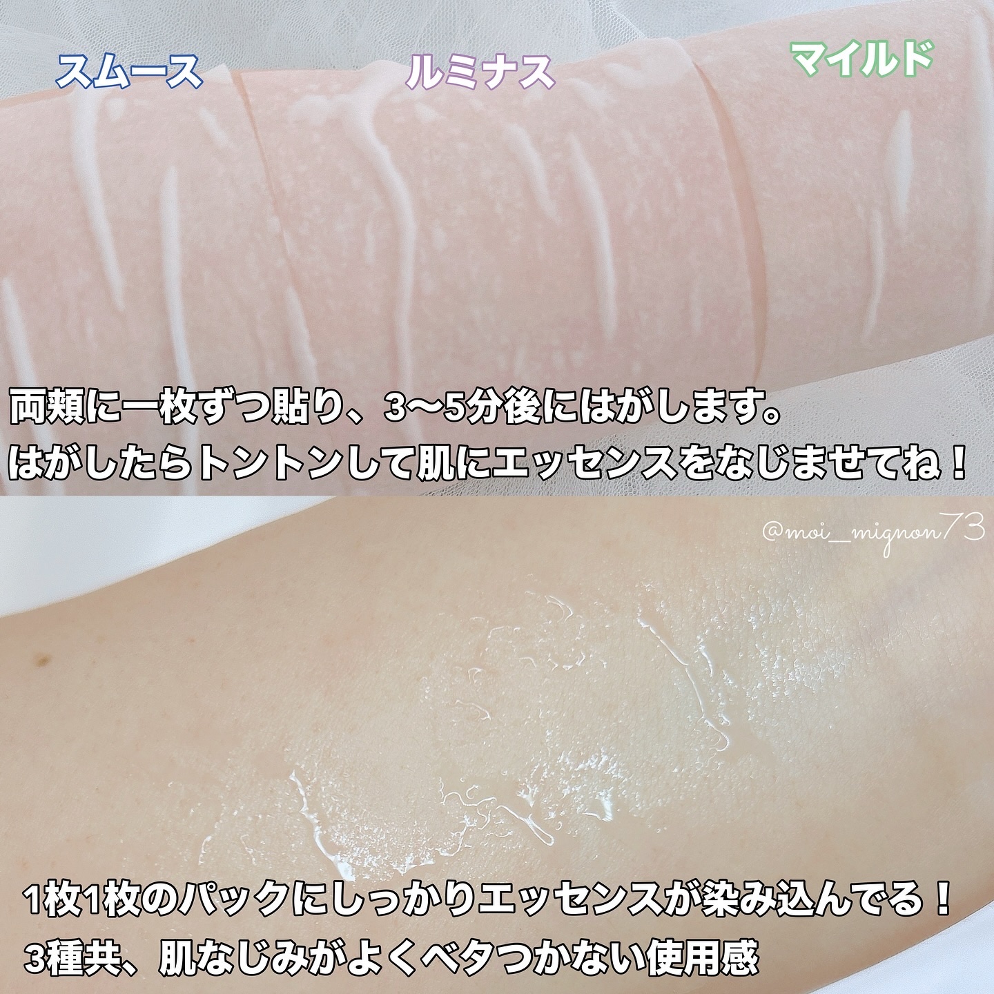 メイク前の肌にひんやり感を与えて化粧ノリをよくしてくれるよ😆 さっぱりとしてベタつかない、たっぷりうるおいを感じる使用感です。サッと取り出せて5分パックするだけで、ひんやりキメの整った肌になるのがラクで嬉しい🥹💕 それぞれ香りが異なるのと、肌悩み別で使い分けることができるから毎日使ってすぐ無くなっちゃうかもー!!