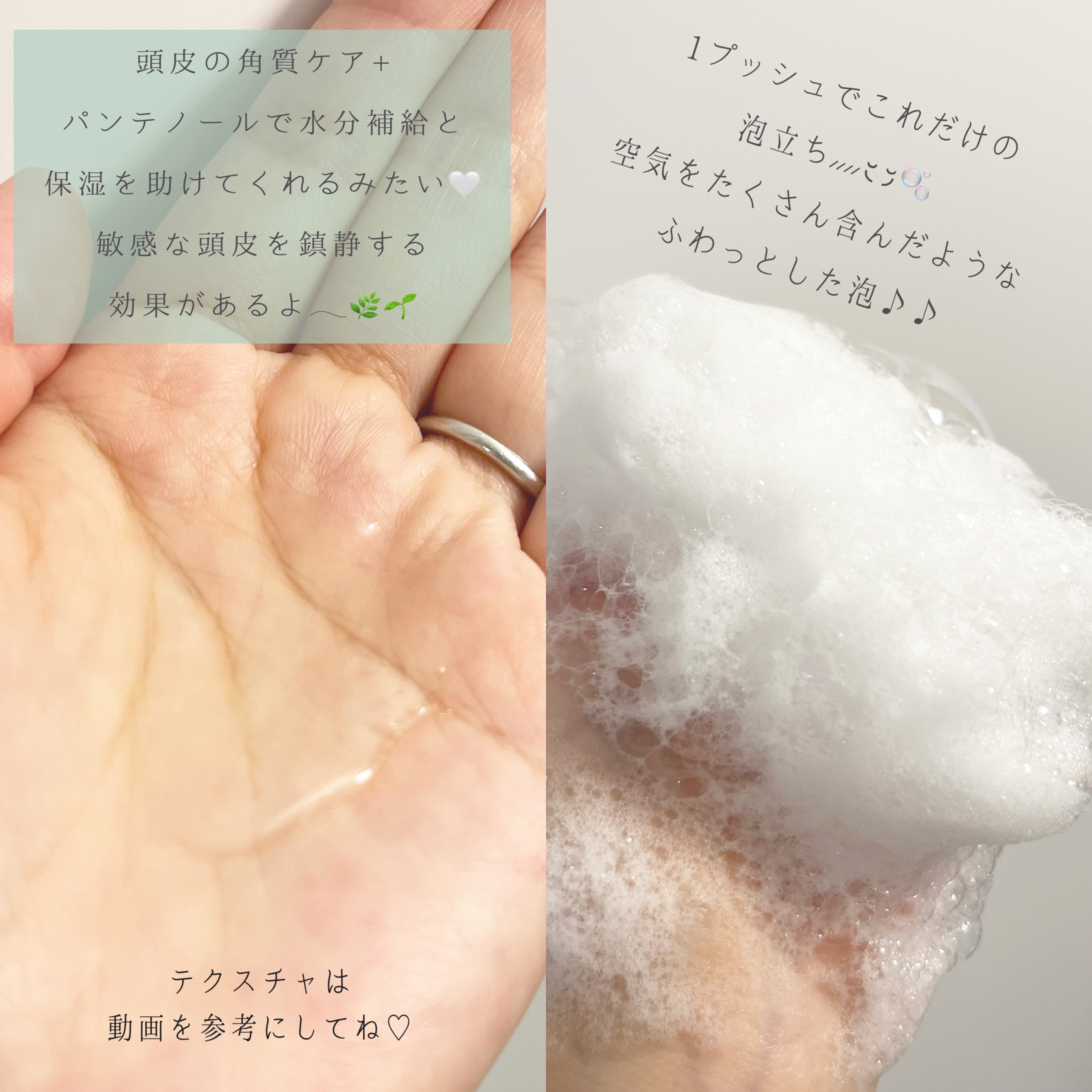 アイロンいらずでスルンとまとまる独自のノンアイロン処方✨ 希少で効果に優れたカシミアケラチンが配合されているみたいです✊🏻✨ ▪️シャンプー水っぽいテクスチャで泡立ち抜群!最初2プッシュしたらすっごい泡泡になりました。笑 泡自体はとてもきめ細かくてフルーティミュゲの良い香りが浴室内に広がります♪ ▪️トリートメント こちらはだいぶこっくりめのテクスチャ! 香りは多分シャンプーの同じ…? ホントこの香りが好きすぎて皆さんにも嗅いでほしい(´゚∀゚`)笑