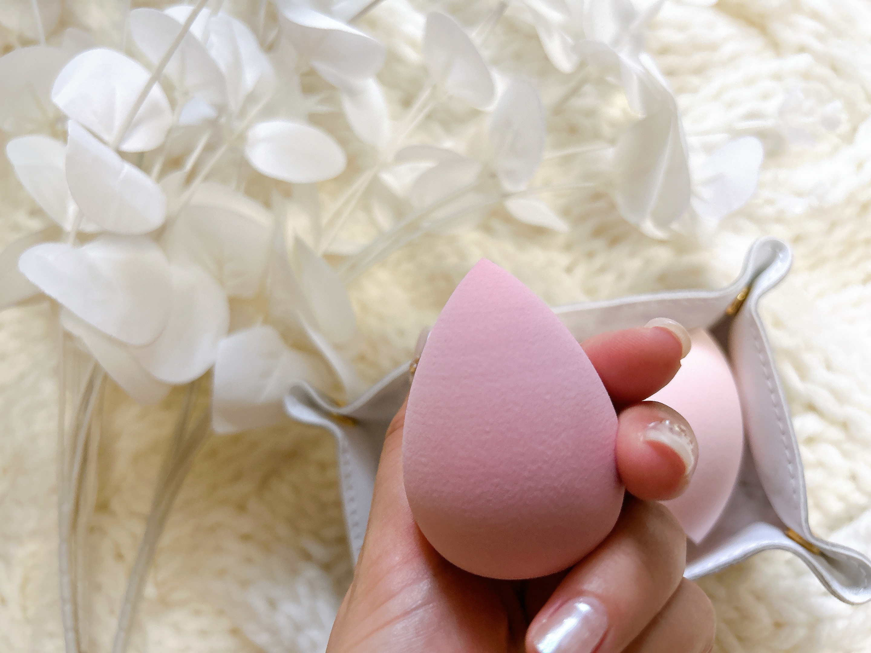 ドライ・ウエット両用です🤍 しずく型とフラット型の2種類が入っててお得感があります👍 濡らすと1.5倍に大きくなってぷよぷよします😆密着度が高まるので、メイクを崩したくない時に使っています💫 くすみカラーもオシャレで可愛いです🤍