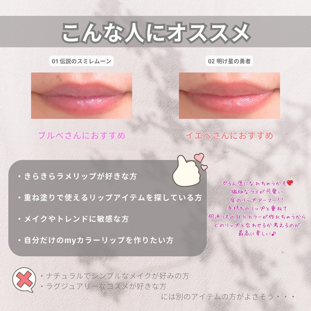 ギラギラ系じゃなくて使いやすそうですね💖パケも中身も可愛い…‼︎レビューすごくわかりやすいです!