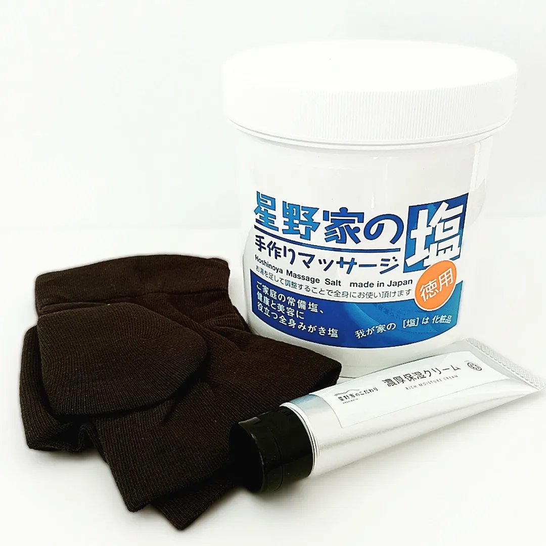 コスパ抜群!頭や顔、体まで全身使える無添加素材ボディスクラブで全身つるつるすべすべケア! 「星野家の手作りマッサージ塩」は原料にこだわっていて、良質な鳴門塩と、天然美容成分のみを使用、さらに無添加素材で作られているから、敏感肌さんも使えるボディスクラブ✨ 冬になるといつもかかとガサガサしているんだけど、これをするようになって大分かかとが柔らかくなってきて嬉しい✨