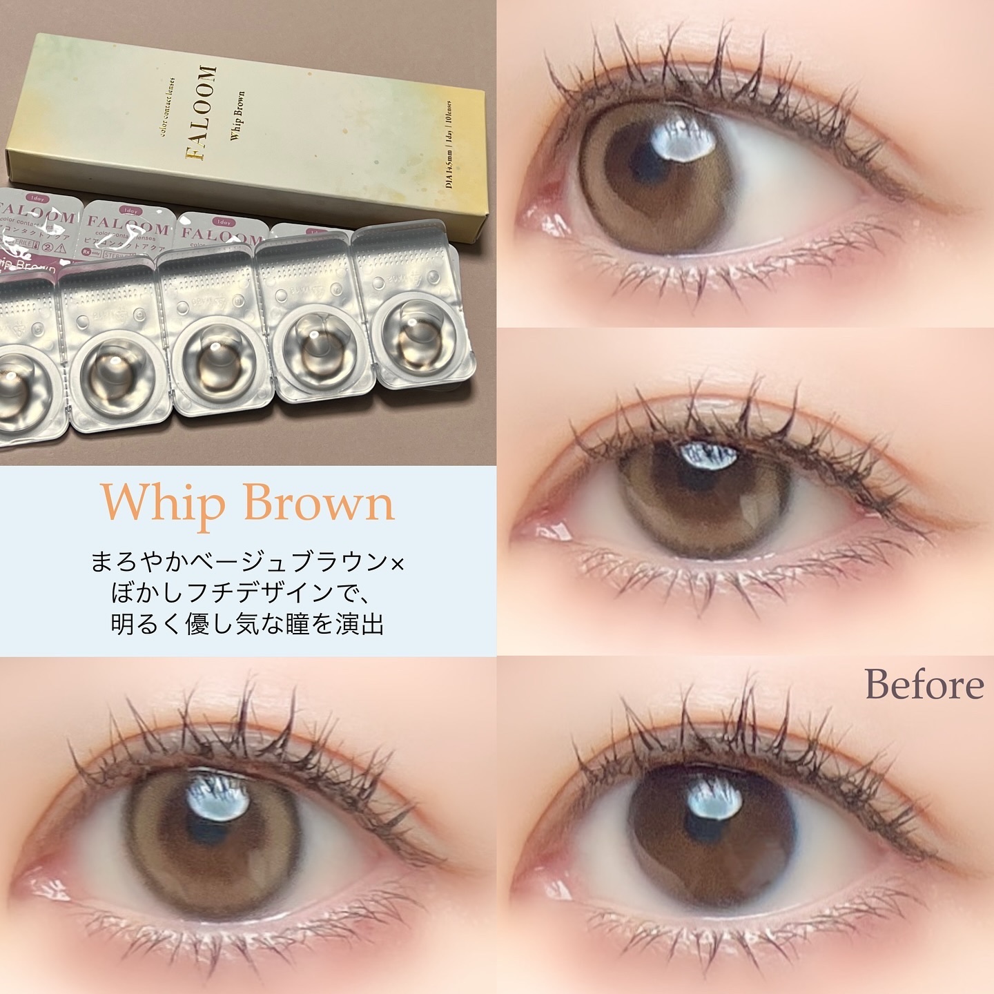 - ※2025年6月以降、商品パッケージ裏面・側面の一部表記を順次変更いたします。尚、これにかかる商品の交換・返品は承っておりません。 『わたしにハマる♡盛れ発色ブラウン』4色のカラーラインナップ ■ヒミツのちゅるんブラウン Secret Tutu Brown (シークレットチュチュブラウン) DIA:14.2mm 着色直径:11.2mm ニュアンスブラウンカラーが自然に瞳のトーンアップを演出してくれる裸眼風デート系レンズ。 ■はかなげ大人っぽブラウン Brulee Brown(ブリュレブラウン) DIA:14.5mm 着色直径:13.8mm トレンドの白っぽブラウン×ふわっとフチデザインで、大人っぽい瞳を演出。 ■甘っぽモテブラウン Whip Brown(ホイップブラウン) DIA:14.5mm 着色直径:13.8mm まろやかベージュブラウン×ぼかしフチデザインで、明るく優し気な瞳を演出。 ■あざとよくばりブラウン Smore Ring Brown(スモアリングブラウン) DIA:14.5mm 着色直径:13.8mm こなれアッシュブラウン×くっきり太フチデザインで、きゅるっと可愛らしい瞳を演出。 カラーコンタクトレンズの不適正使用による眼障害の危険性等などがあります。 ●コンタクトレンズは高度管理医療機器です。不十分な洗浄・消毒など不適切なケアや、長時間・交換期間を超えた装用により、アレルギー性結膜炎、角膜感染症、角膜潰瘍等の重篤な眼障害が発生する危険性があります ●ご使用前に取扱説明書を確認してください 使用上の留意事項 ●眼科医院等を受診してからお求めください ●眼に異常を感じたら直ちにレンズ使用を中止し、お近くの眼科等で診察を受けてください ●医師の指示にしたがってご使用ください ●コンタクトレンズを装用する場合、自覚症状がなくても、眼科医院等での定期検査を受けてください ●レンズに不具合がある場合は使用しないでください