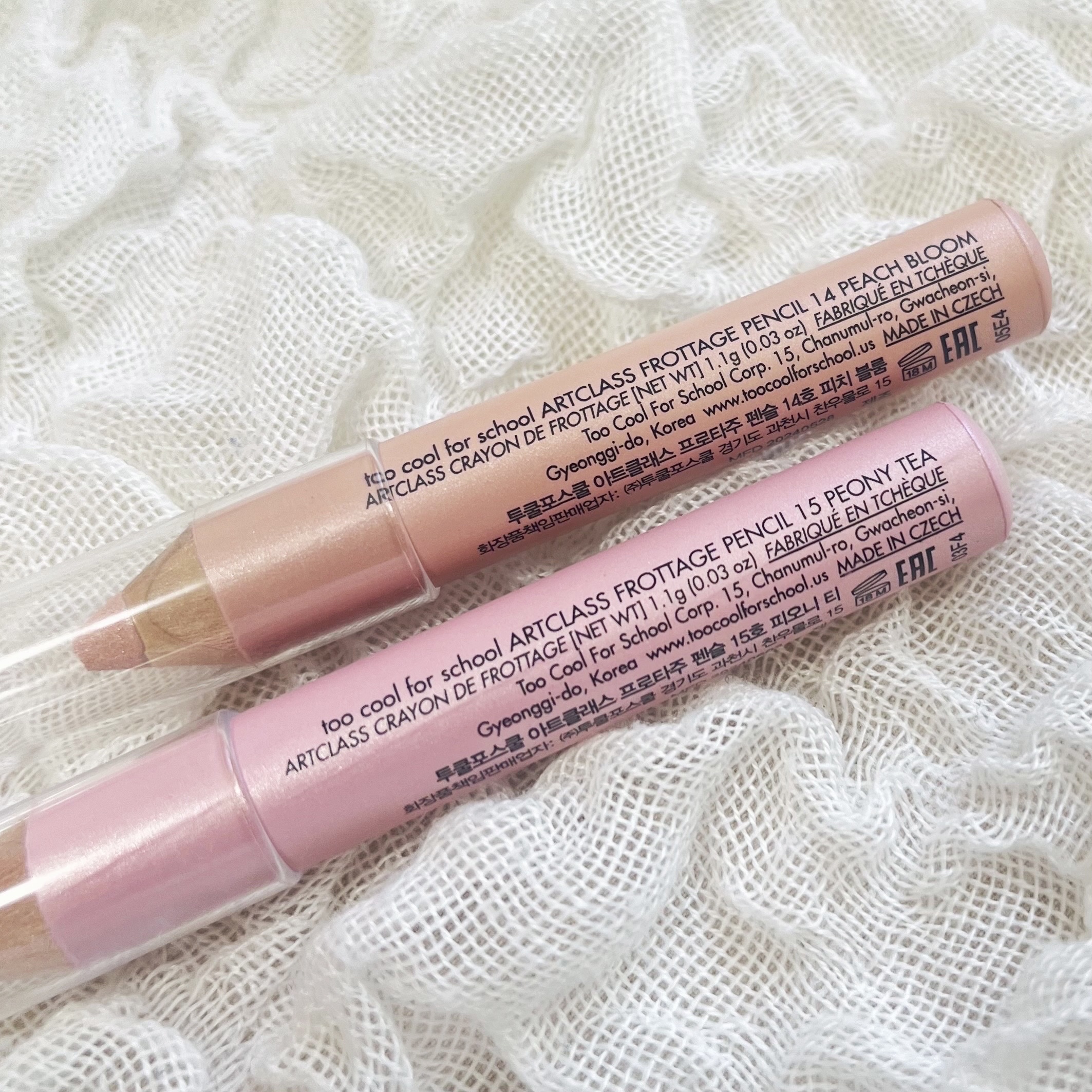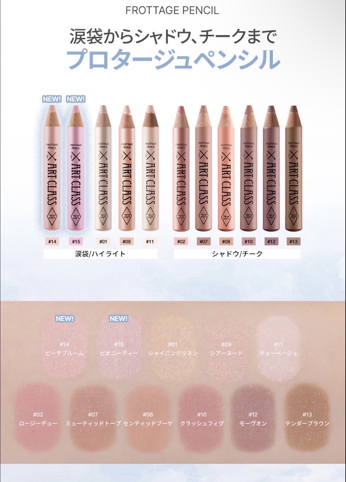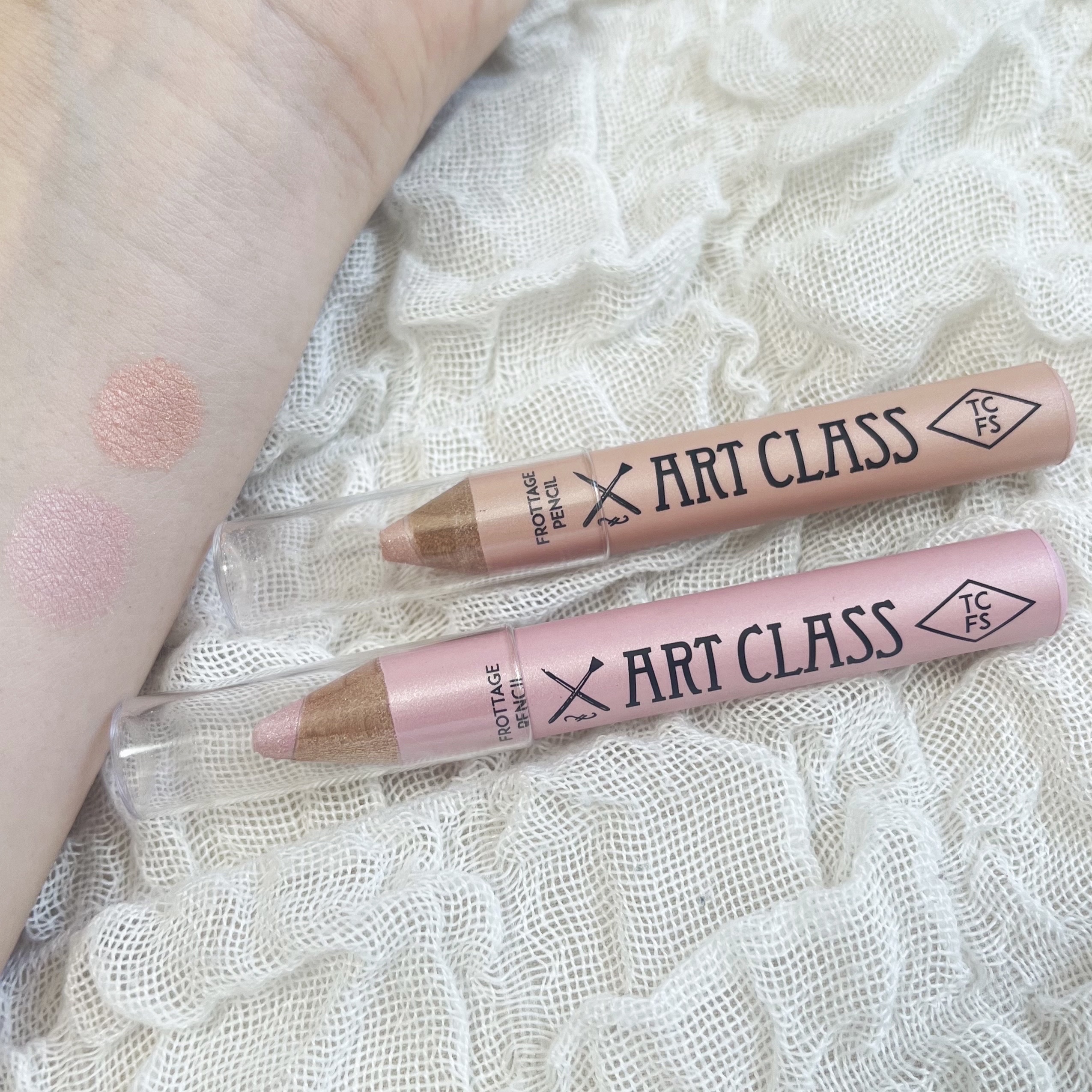 tcfsの新色登場💗手持ち6色スウォッチ✍🏻✧toocoolforschoolフロッタージュペンシル01SHINIGLINEN(gift)09SHEERNUDE(gift)11DEWBEIGE(gift)14PEACHBLOOM(過去提供)1...