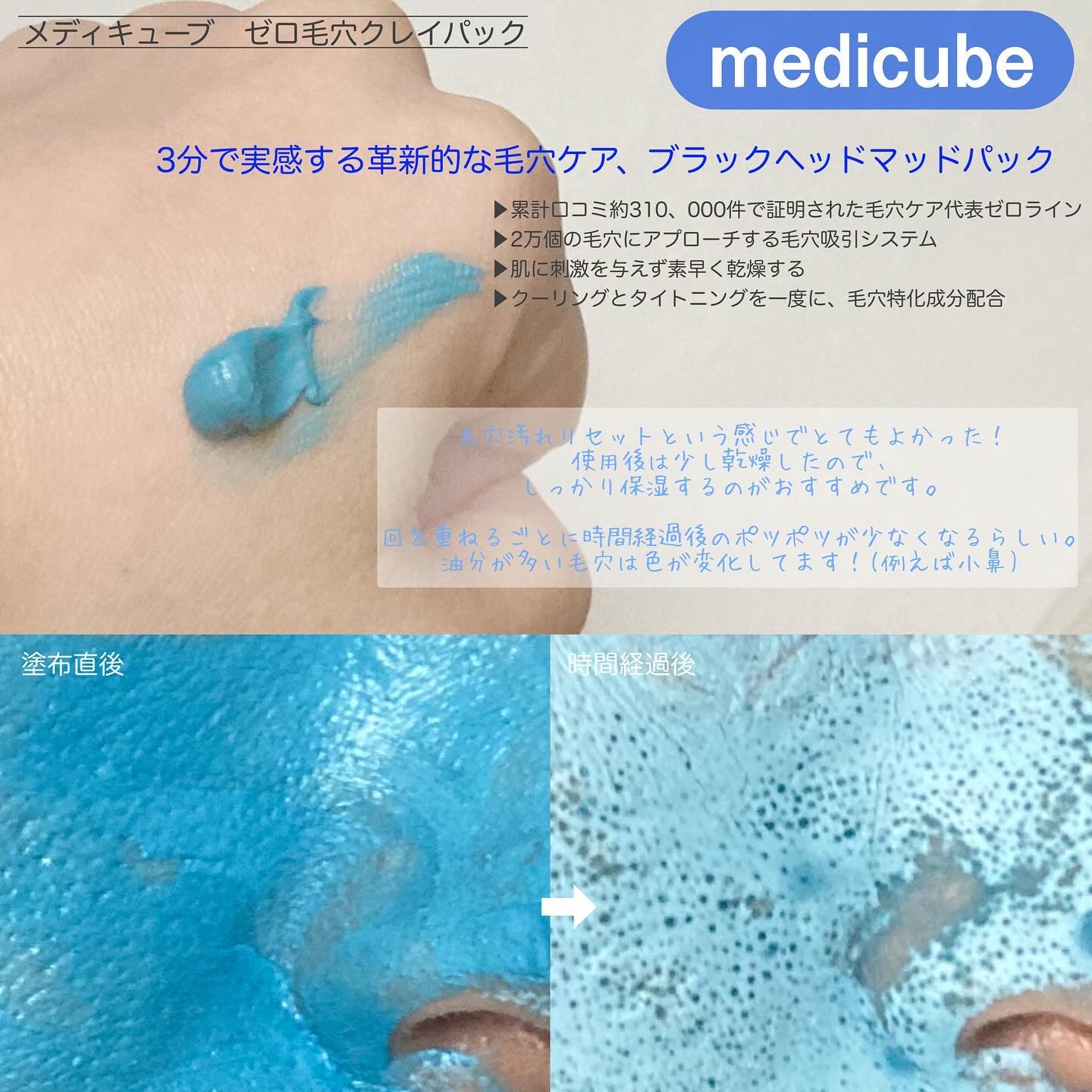青のクレイパックで毛穴ケアMEDICUBEゼロ毛穴クレイパック1,980円(税込)3分で、毛穴の黒ずみに強力吸着して毛穴をケアクリームが乾燥していくと黒ずみの部分がポツポツと浮き出てくる青色だからアバターパックって言われてるんだよ!朝の洗顔前...