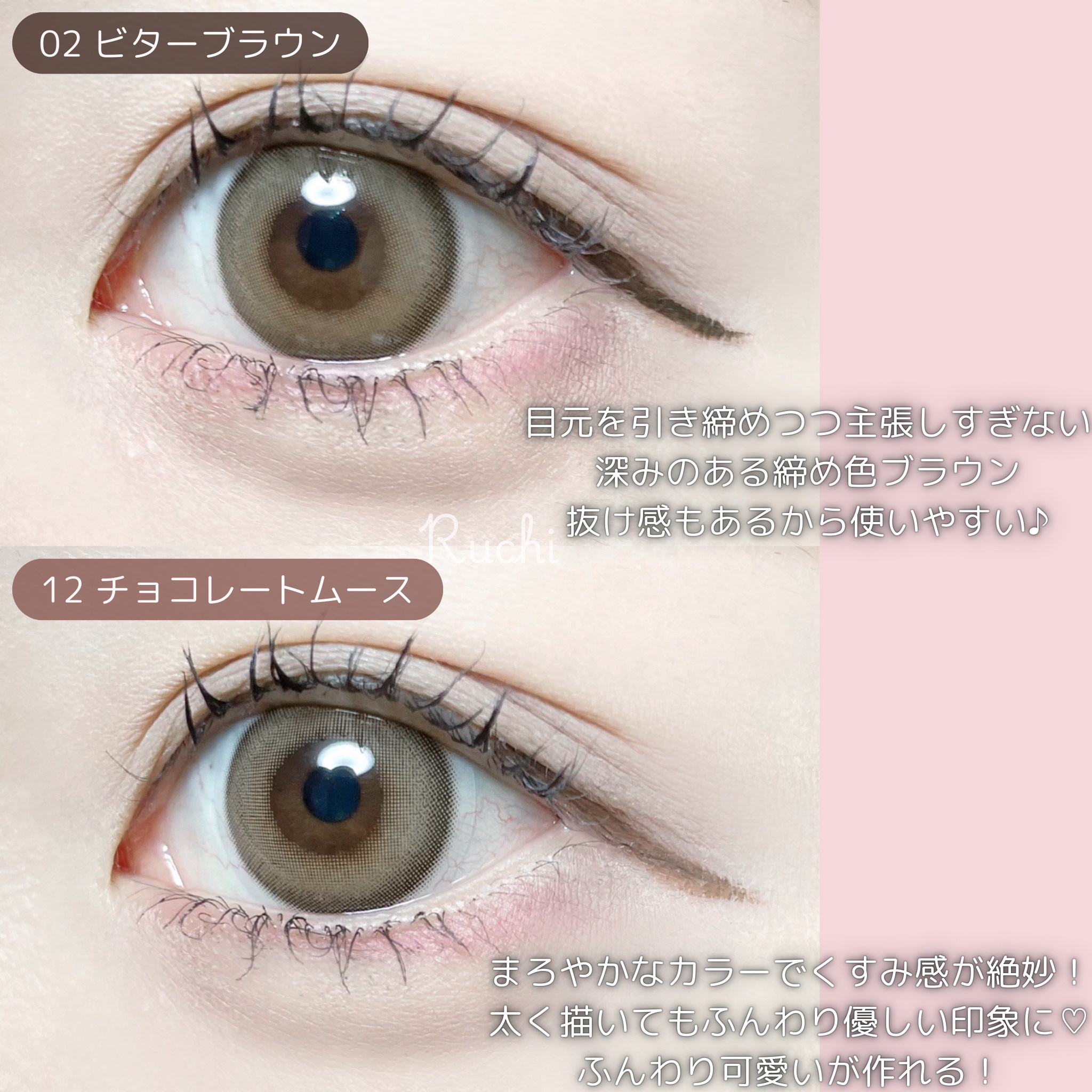 まろやかなくすみ感が肌になじむ ふんわりチョコレートムースのようなブラウン 程よくコシのある筆が描きやすくて 滲みにくく極細の0.1mm筆先だから跳ねラインも綺麗に描けるのが◎ 描きやすいし色味もかすれずに発色してくれるし夜帰宅してもちゃんの残ってたので他の色味も購入してみたいと思った🌷ˊ˗