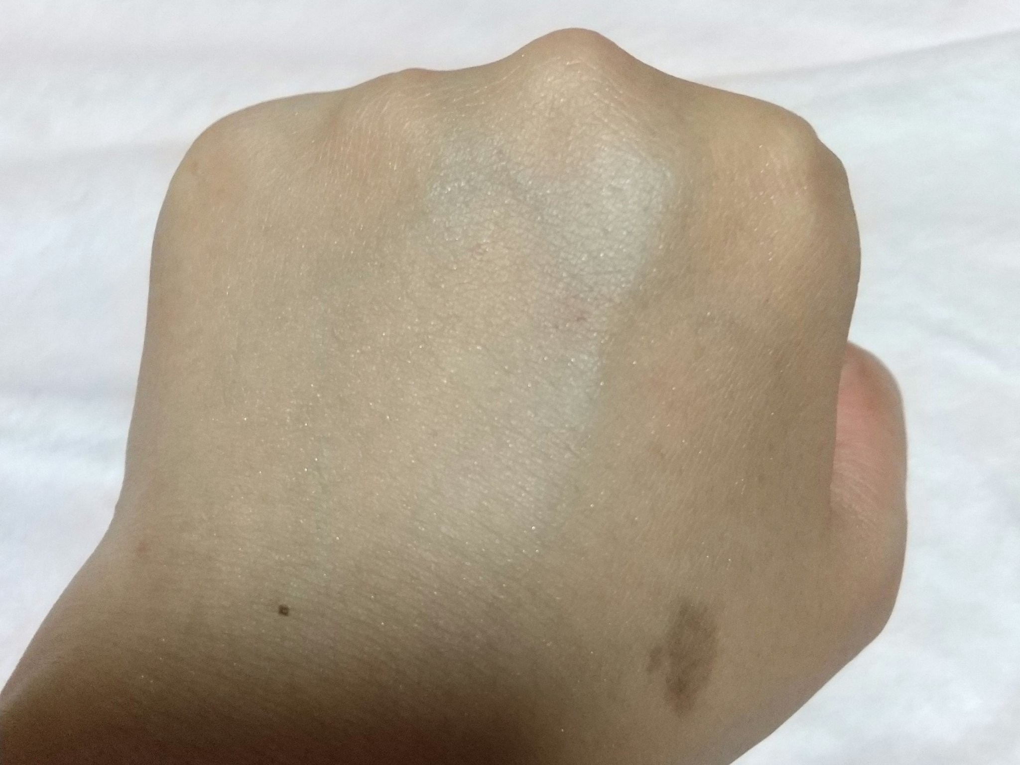 左上、左下、真ん中上、真ん中下、右上、右下という順番でスウォッチしてみました。 出してみると商品の写真より肌にのせたほうがくすみが出るかな✨という印象です😌 伸ばしやすくて指でも筆でもつけやすいです☺️💕 とっても可愛いカラーなのでオススメです💠