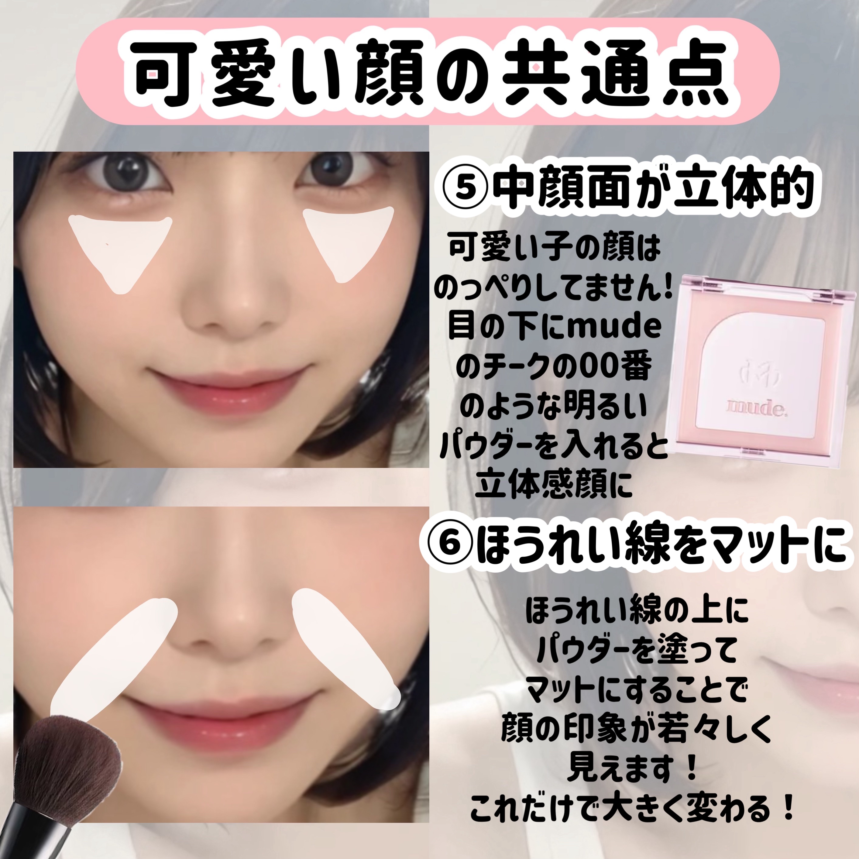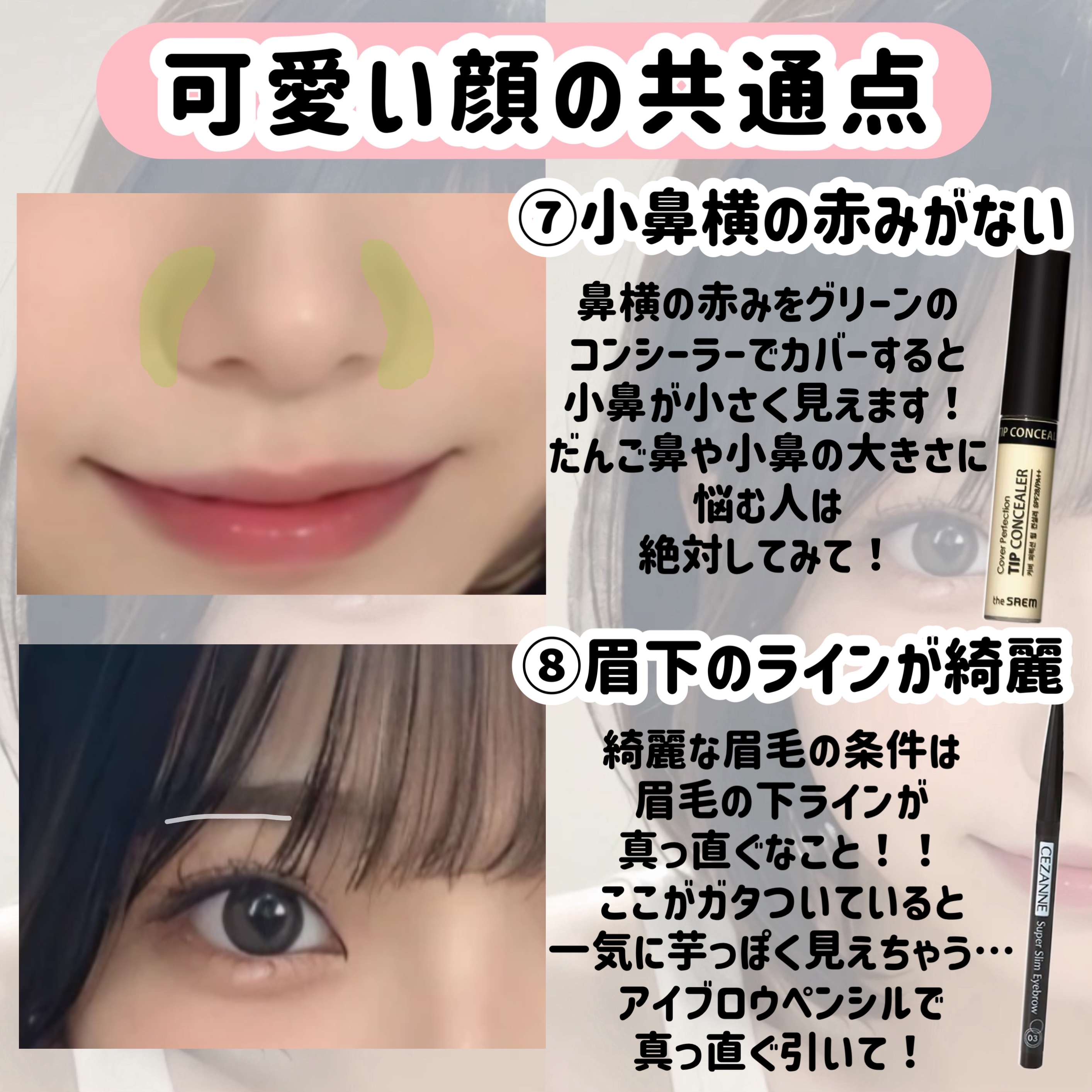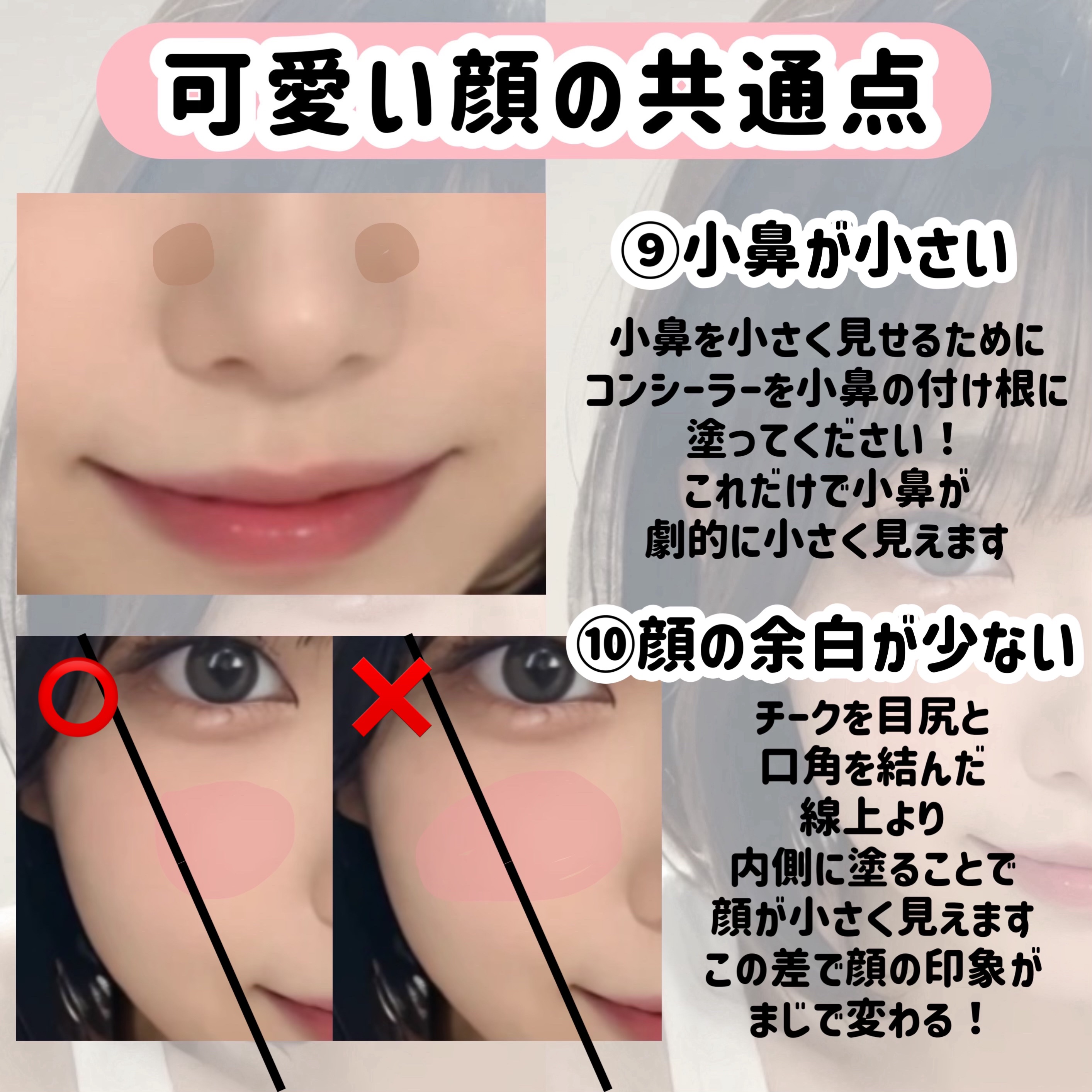 人中短縮メイク!! 人中が短いとのっぺり感が減って可愛らしい印象になります!面長解消にも🙆♀️ 逆に人中が長めだと大人っぽい、男性的な印象になるので、自分の好みに合わせて取り入れてみてください! ぜひ参考にしてください〜!