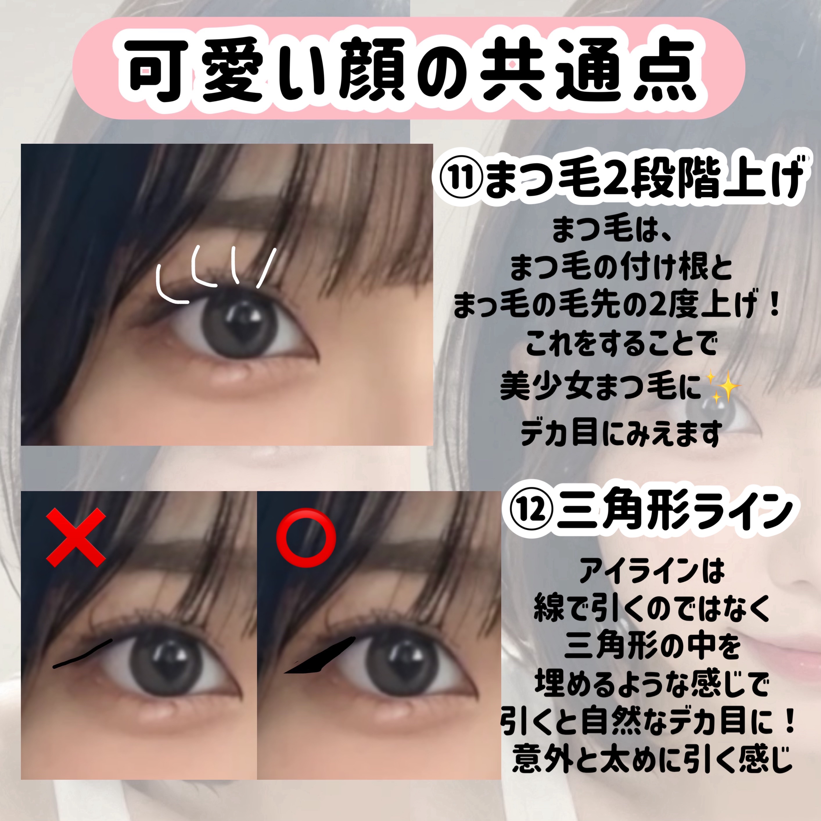 【瞼の筋トレ】について詳しく解説!!これさえすれば絶対変われます!!!瞼の筋トレって?という方は、画像をご覧下さい‼️これがないと私は今頃二重になってなかった…と言っても過言ではないくらい、私の癖付けには欠かせなかったものです!!今回は、昔からしている筋トレ1つと、最近思いついて実践している筋トレ2つをご紹介します!!どれもすごく簡単なので、ぜひ試してみてください📷Q 一日どのくらいしてた?A とにかく暇さえあればしていました!!1日30分の日もあれば、何時間もする日もありましたこの筋トレは、お風呂に入りながらや勉強しながら、スマホ見ながらでもできるのがいいところなので、スキマ時間を上手く活用するのがいいかな思います💭Q 今まで何回くらい筋肉痛になった?A 左右どちらも5回くらいだと思います!瞼が私より軽い方は、1、2回で十分スッキリすると思いますよ❣️Q どれくらいで筋肉痛になった?A 筋肉痛までは平均して2週間くらいかかりました!でもフォロワーさんの中には1日でなられた方も多くいらっしゃいますなのでその人の瞼や頑張り次第だと思います❣️Q 筋トレ1