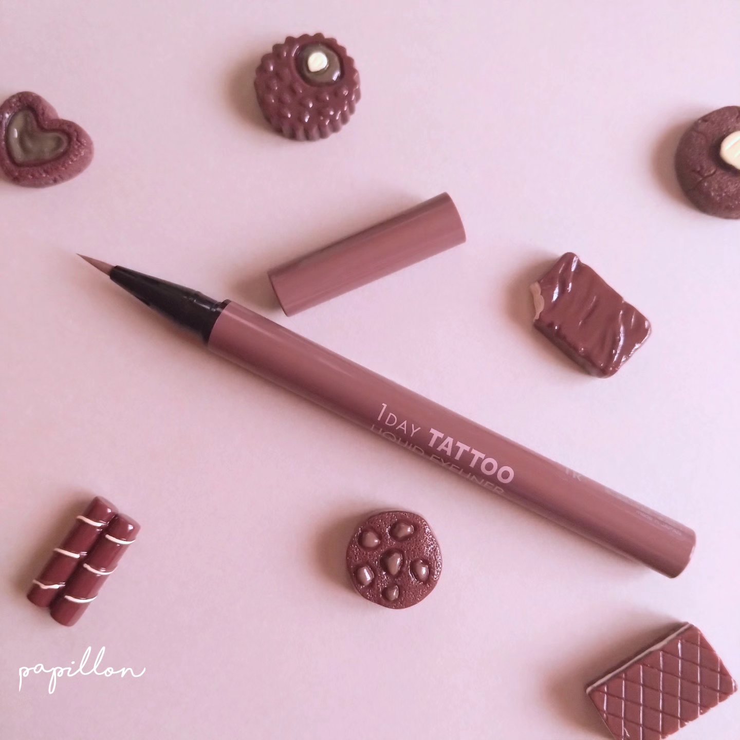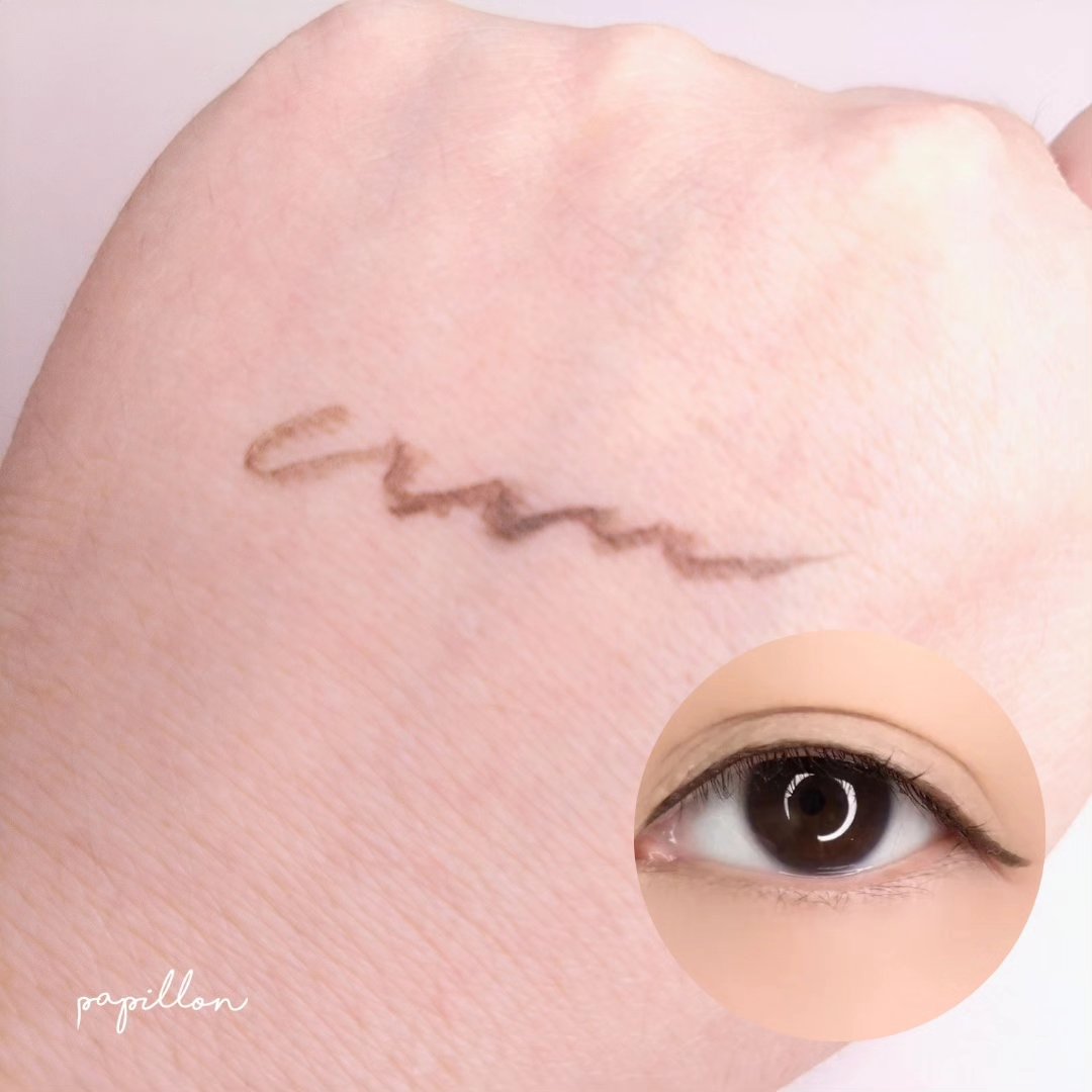 まろやかなくすみ感が肌になじむ ふんわりチョコレートムースのようなブラウン 程よくコシのある筆が描きやすくて 滲みにくく極細の0.1mm筆先だから跳ねラインも綺麗に描けるのが◎ 描きやすいし色味もかすれずに発色してくれるし夜帰宅してもちゃんの残ってたので他の色味も購入してみたいと思った🌷ˊ˗
