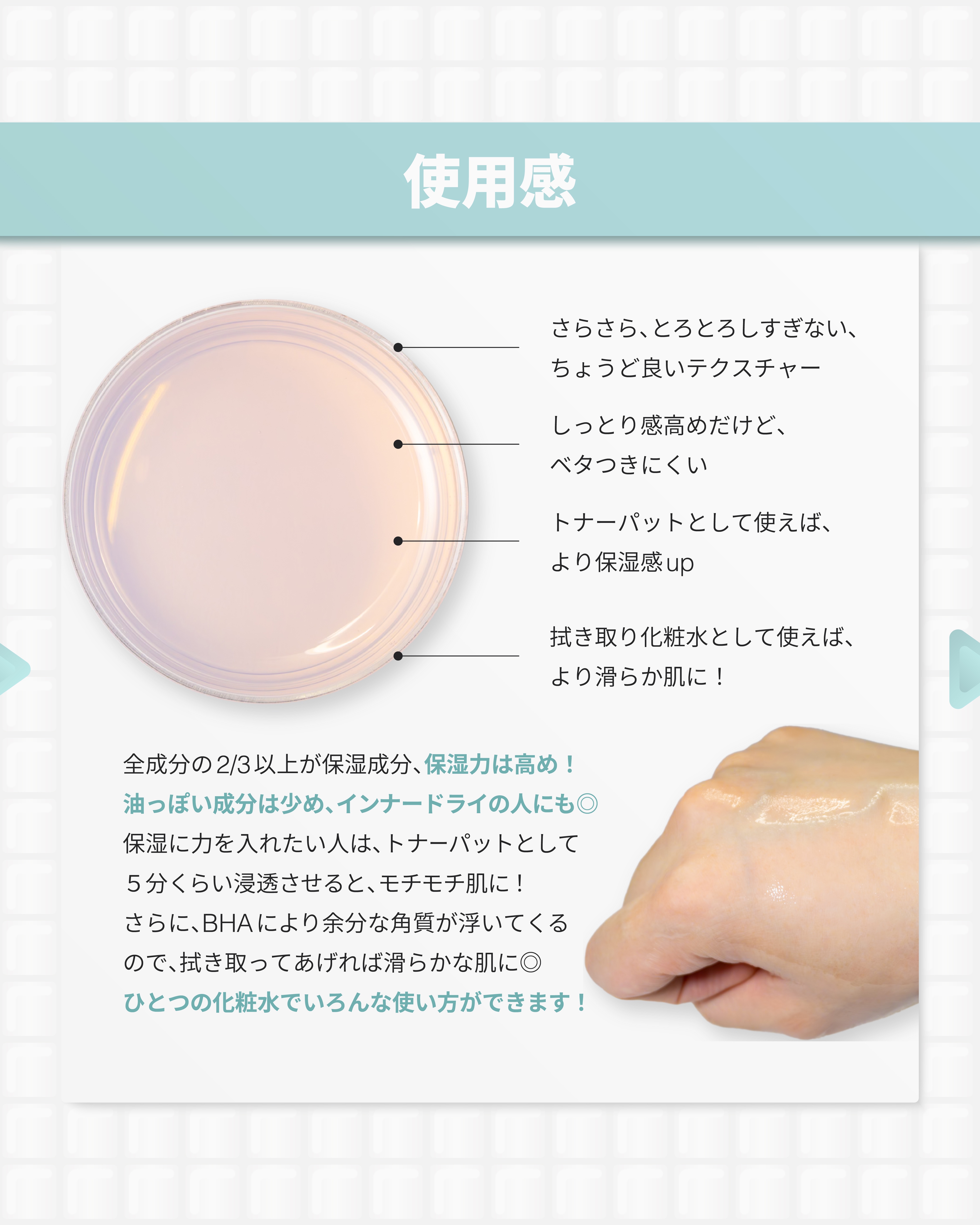 | スキンケアランキング第70位 | 液サラッとみずみずしいテクスチャーです。肌にサッと馴染んでさっぱりとした使用感でした! | 詳細を見る |