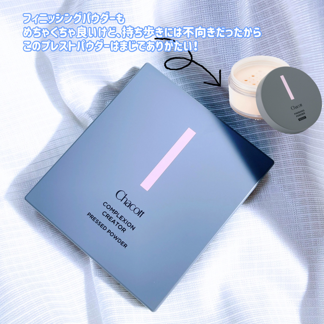 - チャコットを代表するフィニッシングパウダーから、お客さまのご要望が多かった「プレストタイプ」が新登場。 フィニッシングパウダーのくずれにくさ、テカリにくさのなど機能性はそのままに仕上がりにもこだわった「美肌仕上げ」のプレストパウダーとなっています。 パフの三分の一程度にパウダーをとり、気になる部分にのせます。 肌表面をすべらせるように馴染ませると磨かれたようななめらかな仕上がり*に。 使い方 パフの二分の一程度にパウダーをとり、気になる部分にのせます。 肌表面をすべらせるように馴染ませると磨かれたようななめらかな仕上がり*に。 *メイクアップ効果による