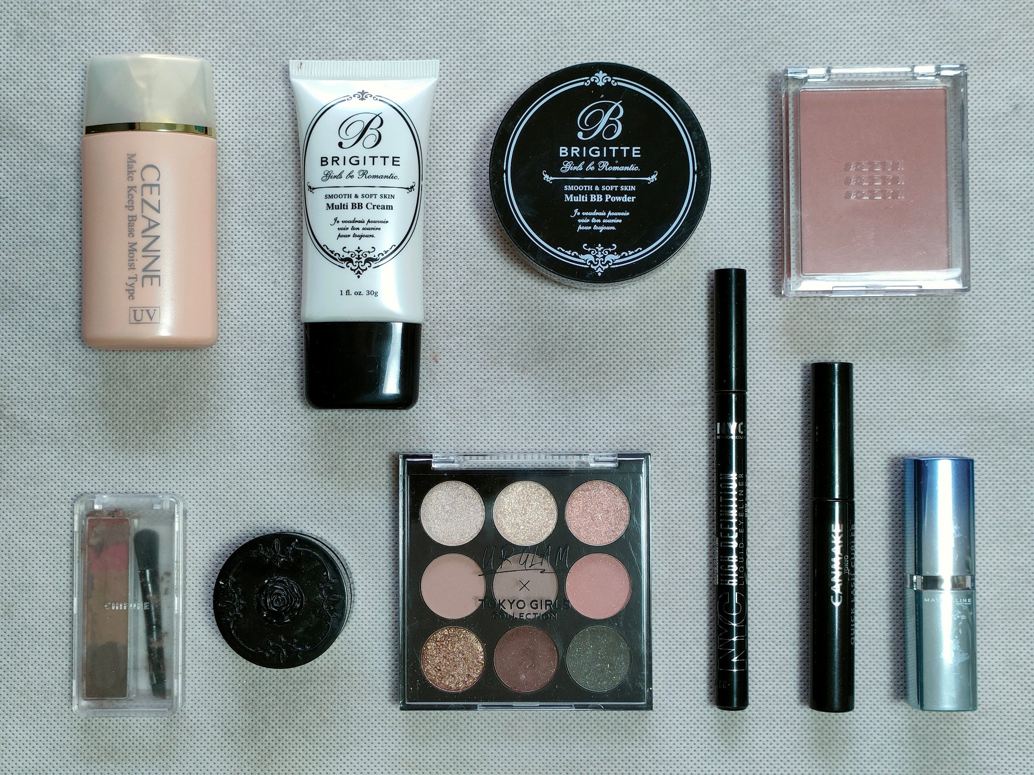 アリィー ニュアンスチェンジUV ジェル RSを、顔全体にまんべんなく塗ります。 RMK RMK ジェルクリーミィファンデーション 103を、顔全体にまんべんなく塗ります。 ジョンソンベビー ジョンソン ベビーパウダーを、顔全体にまんべんなく軽くはたきます。 THE BODY SHOP bronze shade warm glowを、両頬に塗ります。 KATE リフレクトミラーアイズ BR-1の締め色を、眉毛全体にまんべんなく塗ります。 URGLAM UR GLAMBLOOMING EYE COLOR PALETTE 01を、使用しました。 ちふれ リキッド アイライナー 筆ペンタイプ BK30 ブラックを、塗ります。 CEZANNE エアリーカールマスカラを、まつ毛全体にまんべんなく塗ります。 MAYBELLINE NEW YORK コロッサルボリュームエクスプレスを、まつ毛全体にまんべんなく塗ります。 MAYBELLINE NEW YORK SPステイ マットインク 135を、唇全体にまんべんなく塗ります。