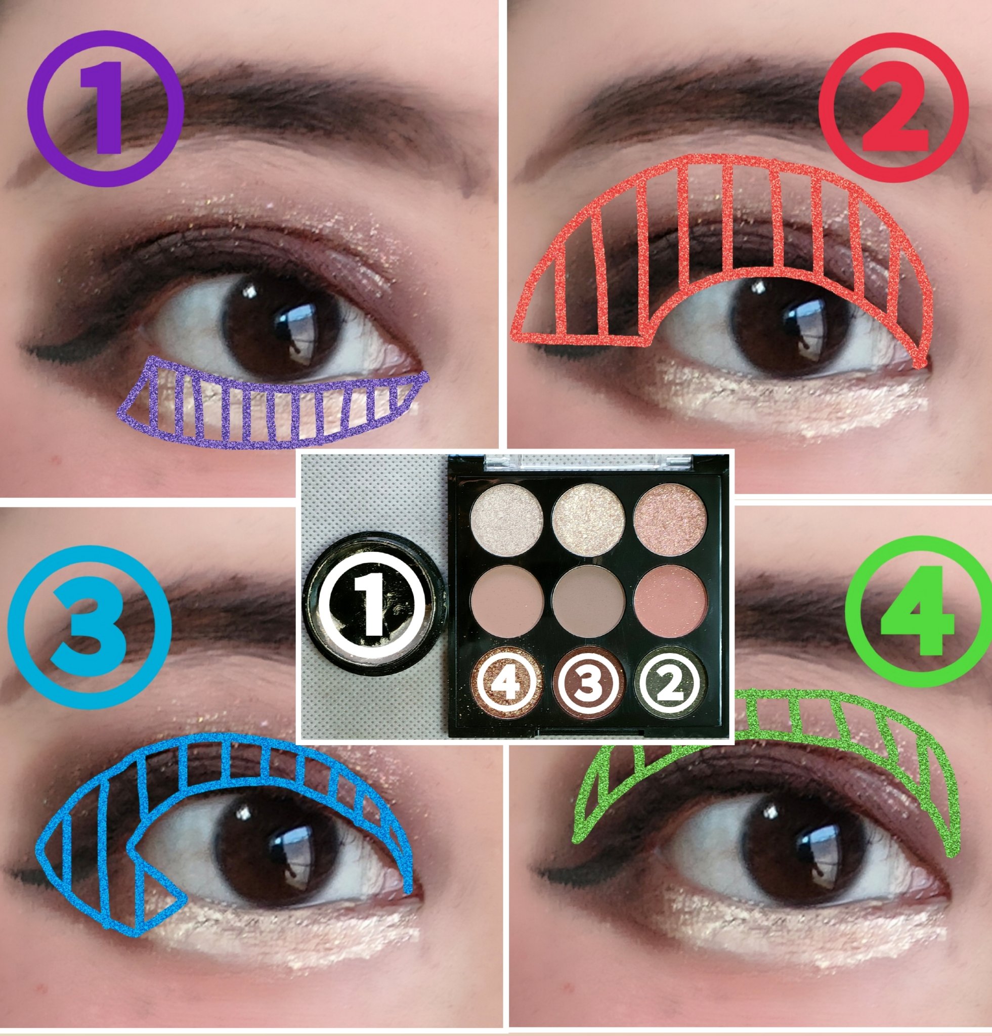 アイシャドウパレットは、URGLAM UR GLAMBLOOMING EYE COLOR PALETTE 02を、使用しました。 マスカラは、MAYBELLINE NEW YORK コロッサルボリュームエクスプレスを、まつ毛全体にまんべんなく塗ります。 リップは、wet 'n' wild MegaLast Lip Colorを、唇全体にまんべんなく塗ります。
