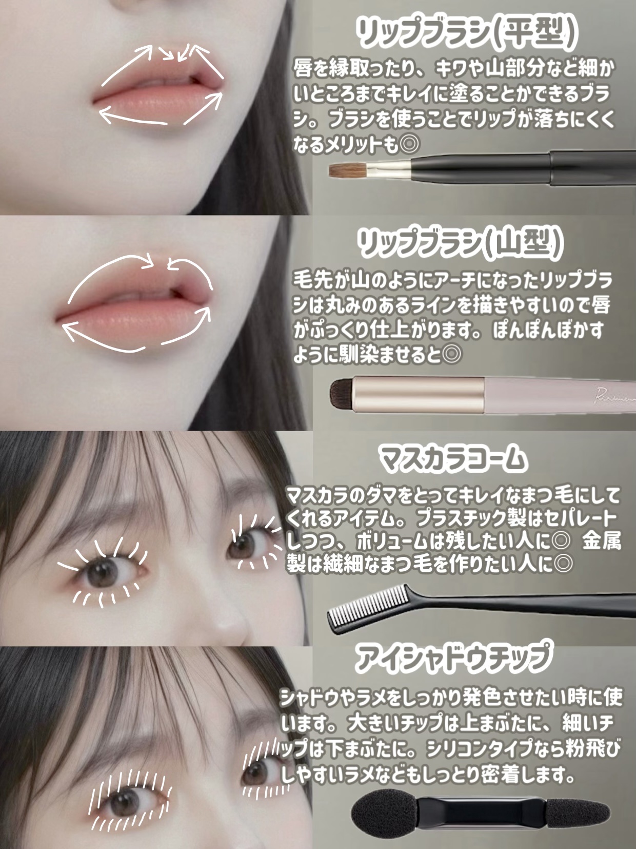 ベースメイクの順番はファンデーションの種類によっても違うのですが、 アイメイクはアイシャドウ→ビューラー→アイライン→マスカラという順番で行います。 アイメイクとのバランスを考えながら、どのリップを塗るかを決めます。 パウダーチークとクリームチークがありますが、クリームチークはムラになりやすいので初心者さんはパウダーがいいかも🙆♀️ ベースメイクの最後でもOKですが、全体のバランスを見ながら入れることでシェーディングが濃くなりすぎたりハイライトを付けすぎるなどの失敗が少なくなります。