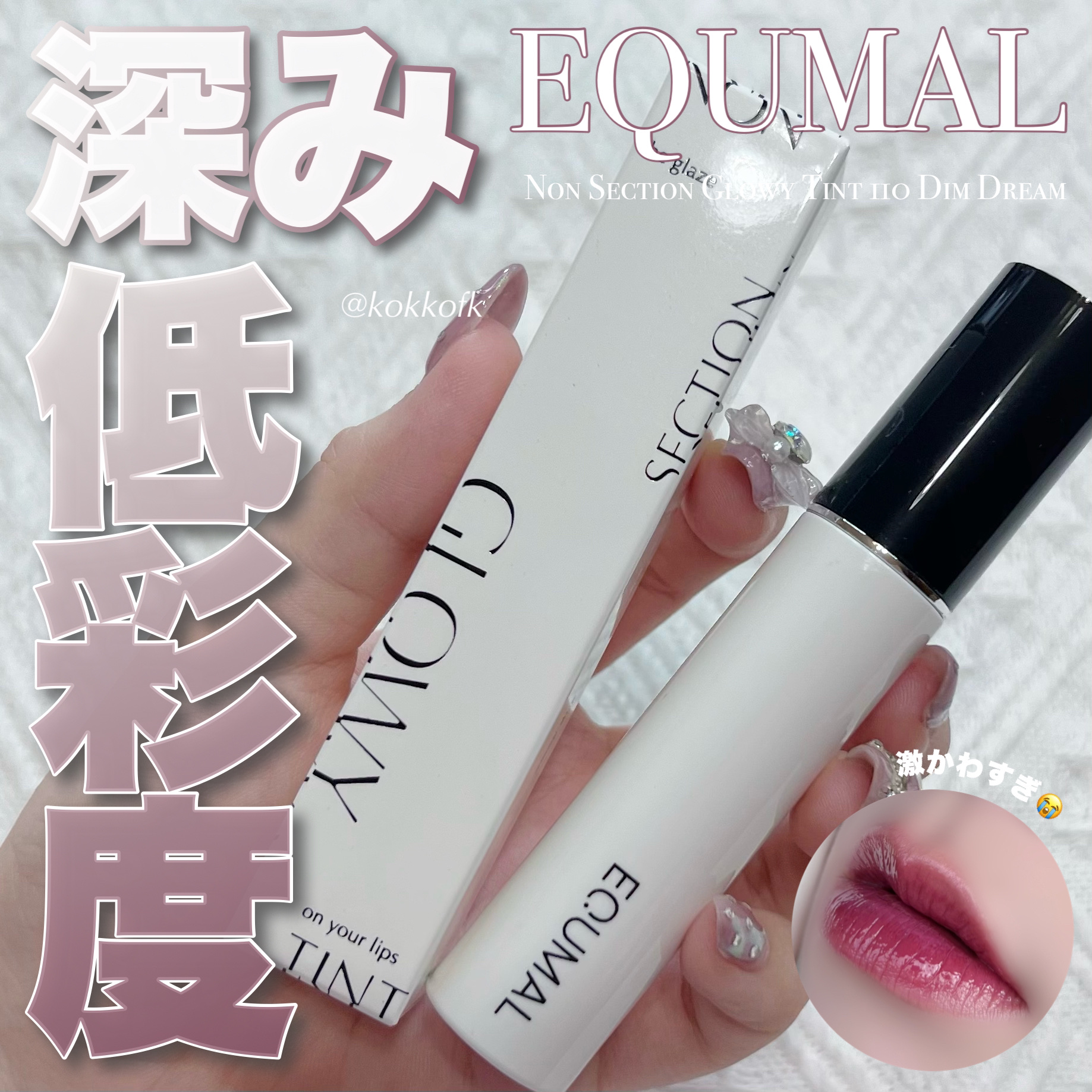 - 韓国のビューティー系インフルエンサー、LAMUQUE(ラミュク)さんが手掛けるブランド「EQUMAL(エクマル)」のティントリップ。 オイル膜が水分ティントを包み込み、みずみずしくツヤのある仕上がりをキープします。 時間が経過するほど透明感が増し、ツヤっとした質感が引き立ちます! ✓40%の水分量とローズリップオイルを配合 ✓ グラッシーグロウフィニッシュ:美しい発色&立体的&透明感溢れる仕上がり ✓ 革新的な使い心地:唯一無二の『シグネチャーリップスプレッダー』 →カラーを均一に密着させた後にグレーザーで唇の外側をぼかすと簡単にグラデーションリップ出来上がり! ✓ ベタつかずに時間が経つとともに浮かんでくるオイルの艶感!潤いとツヤを一日中キープ!