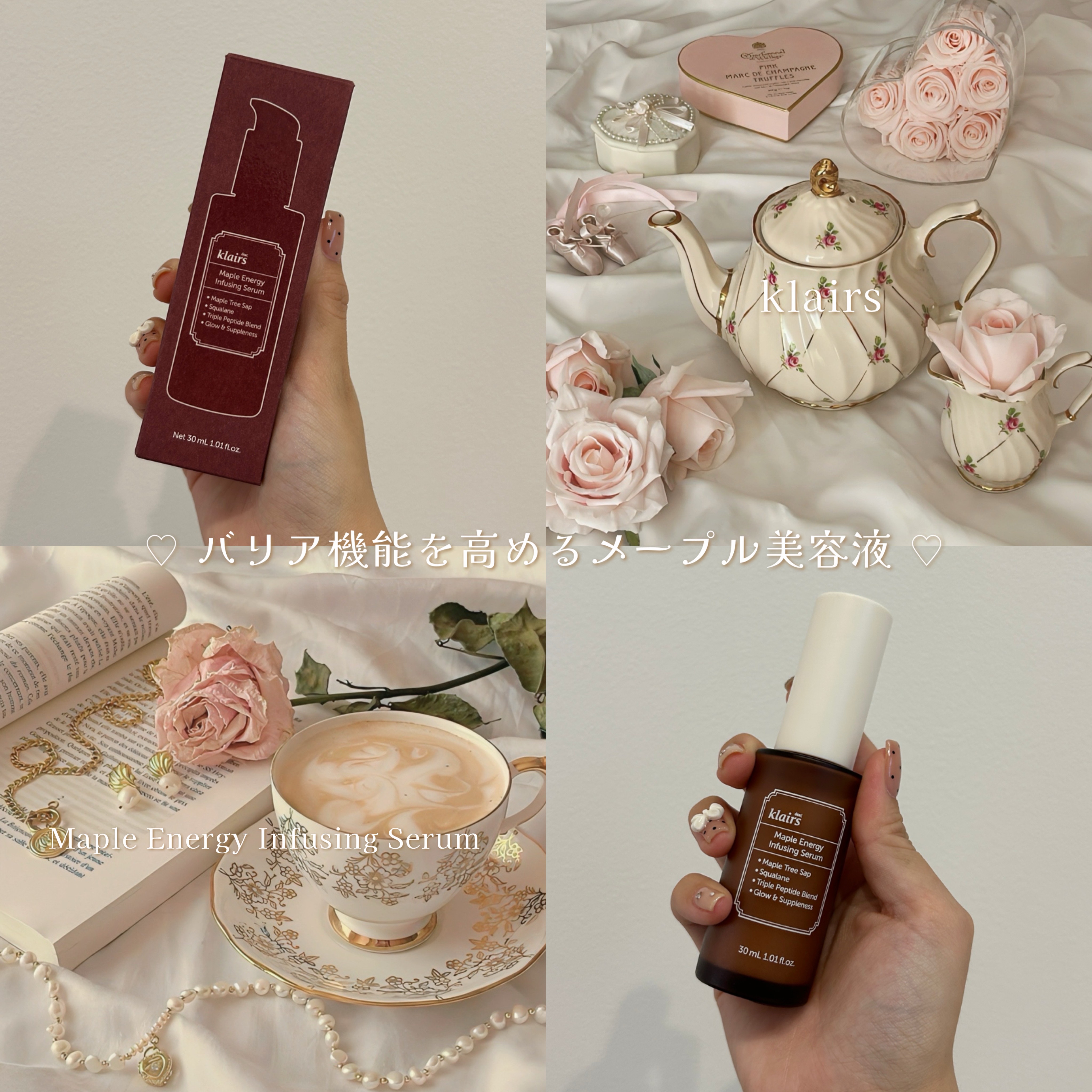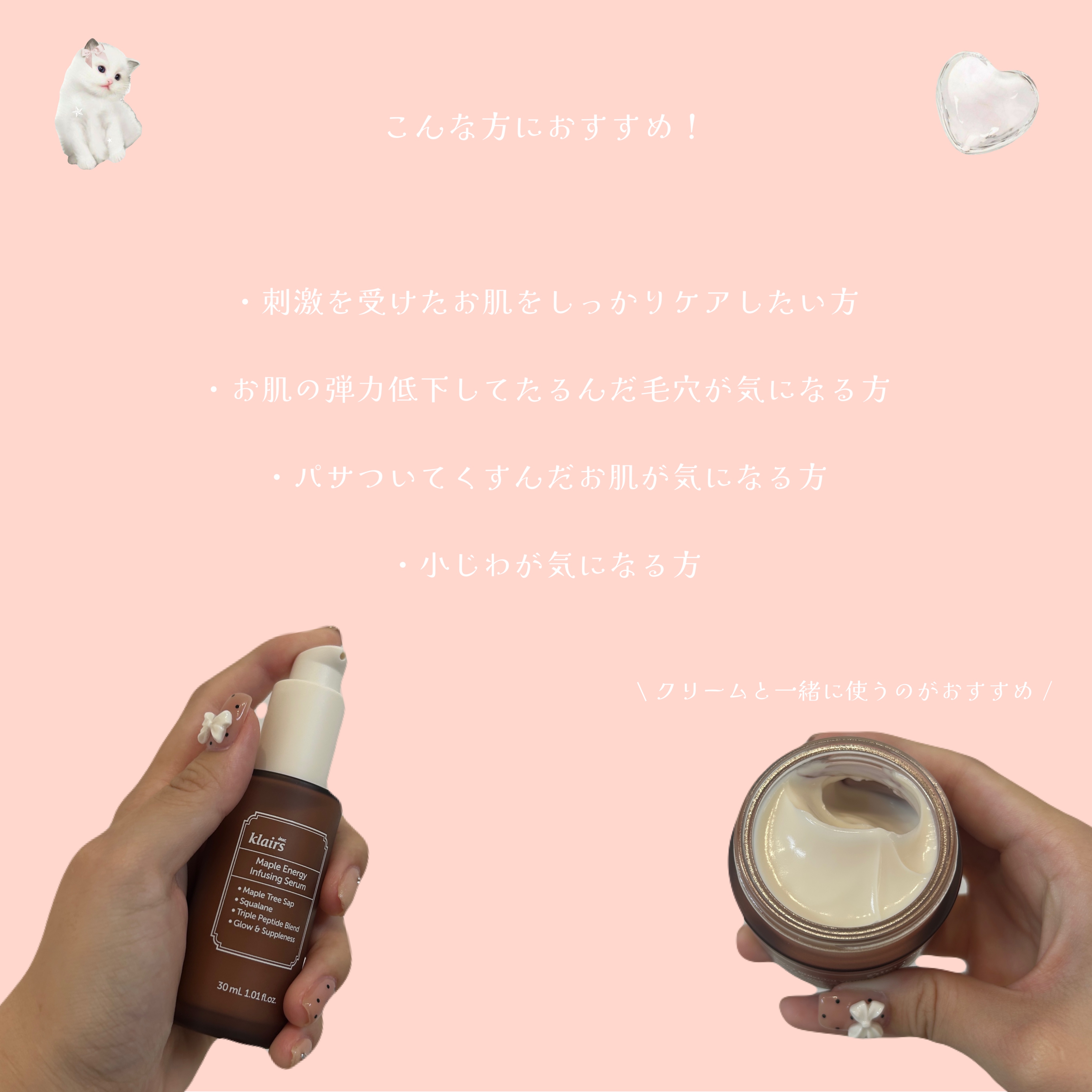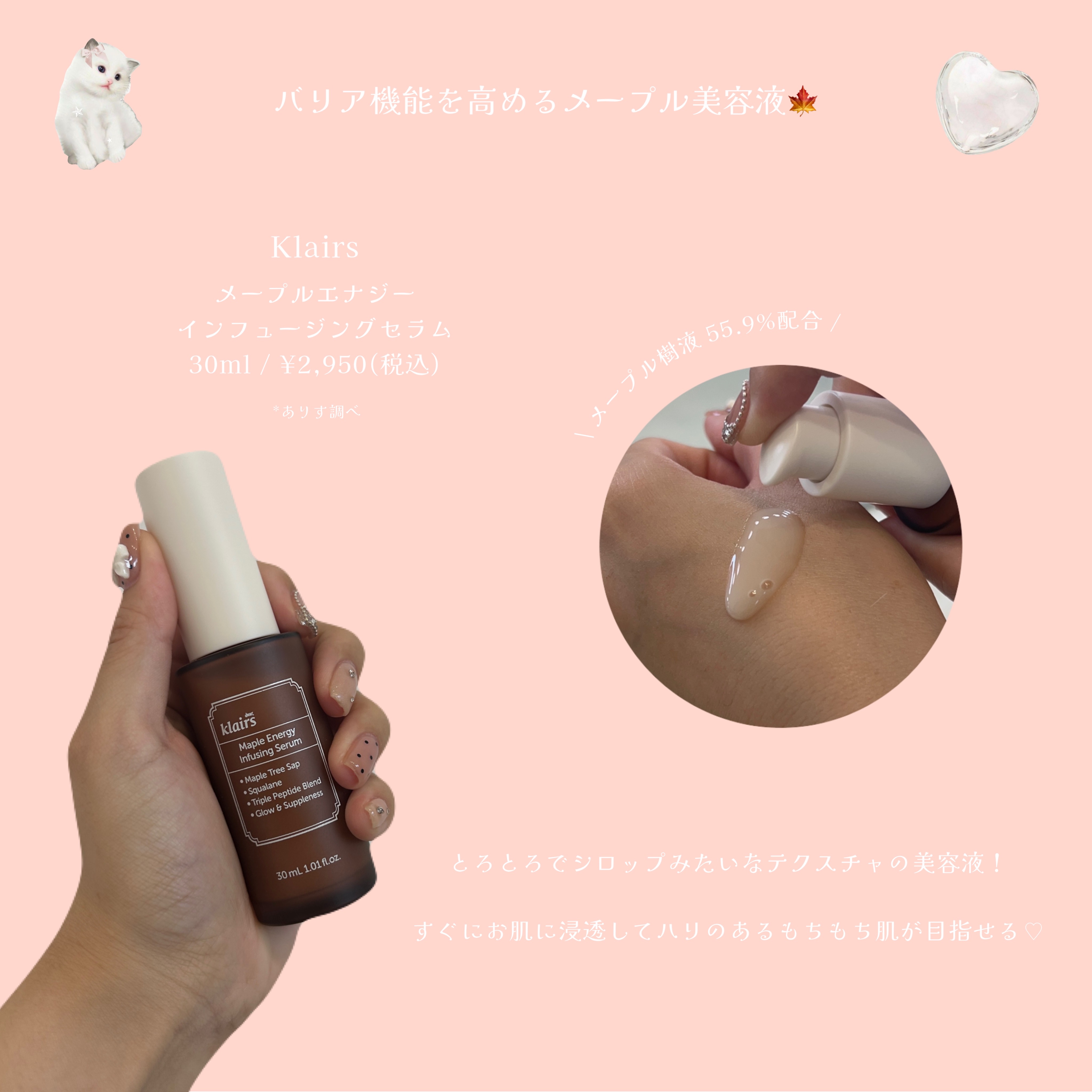 メープル液を濃縮して作った栄養豊富なセラム ×スクワラン×ペプチド 毛穴・弾力ケアに効果的 おでこ、目元、ほうれい線などの小ジワ改善の人体適用試験完了👍🏻 とろーんとのびるシロップテクスチャー ハリ艶がでてもっちり肌になるよ🧡🧡🧡