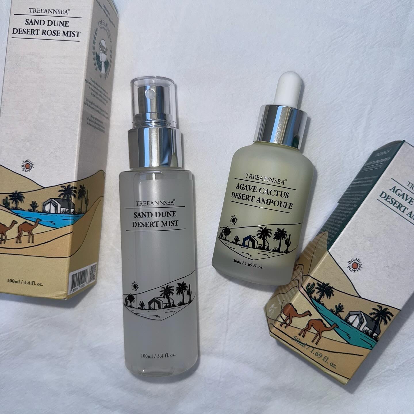 TREEANNSEA(ツリーアンシー)は土(TREE)と海(SEA)、大自然(Mother Nature)から少女・アン(ann)が生まれて肌の老化を遅らせる旅をコンセプトにしたビューティーブランド🌿 保湿力に優れたデザートローズエキスを90%配合したミストで、ベタつかず手軽に水分補給🌟 アガベサボテンを84%以上配合した水分ケアアンプルで、乾燥によりくすんだ肌をなめらかで透明感のある肌に導きます✨