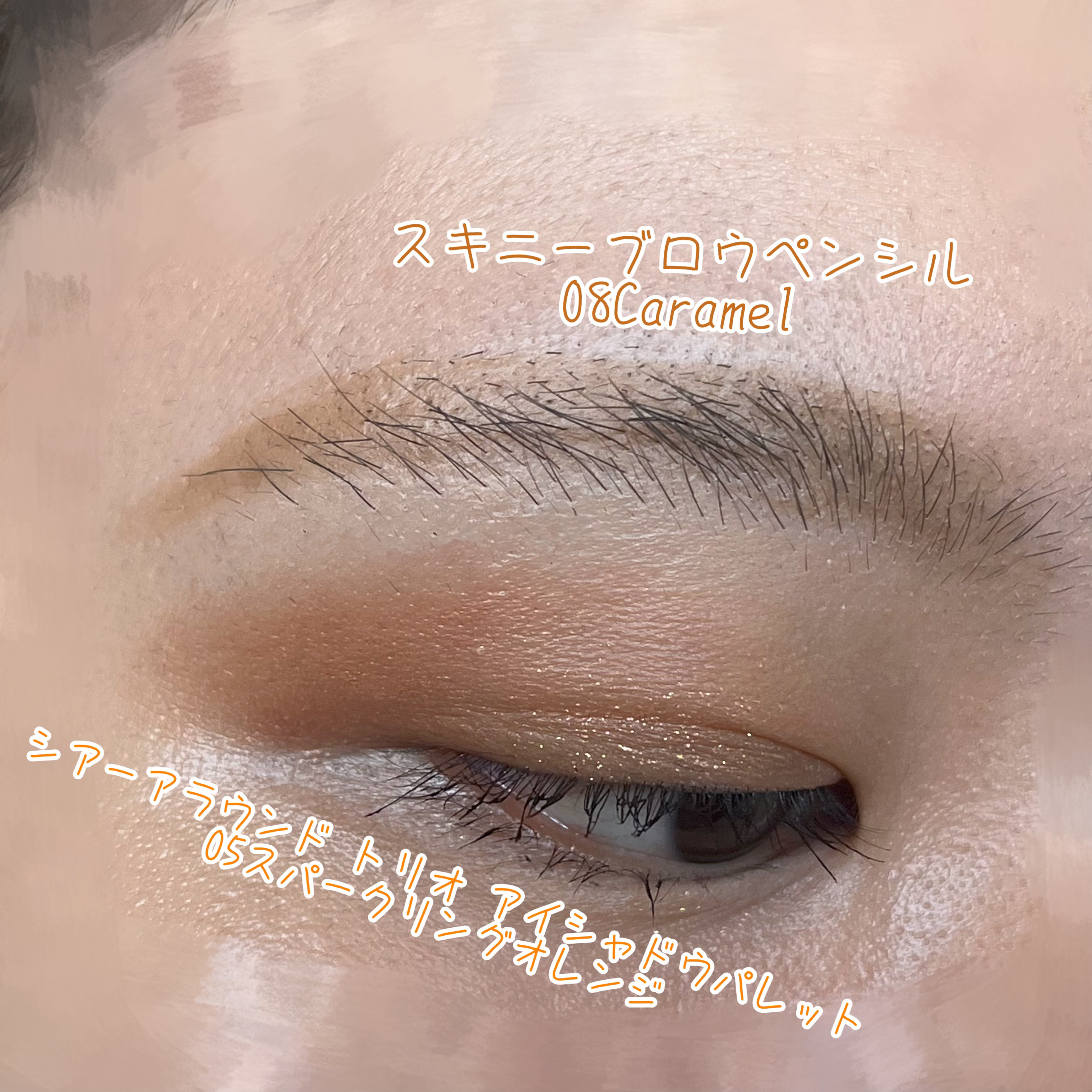 イエローラメが可愛い💛冬の暖色メイク1アイホール全体に2アイホール真ん中あたりまで3目尻を囲うように4三角ゾーンからまつ毛の際に5アイホール上部、涙袋にアイラインはシナモンオレンジでポイントに、マスカラは上下で色を変えて気分の変わるメイクに♡...