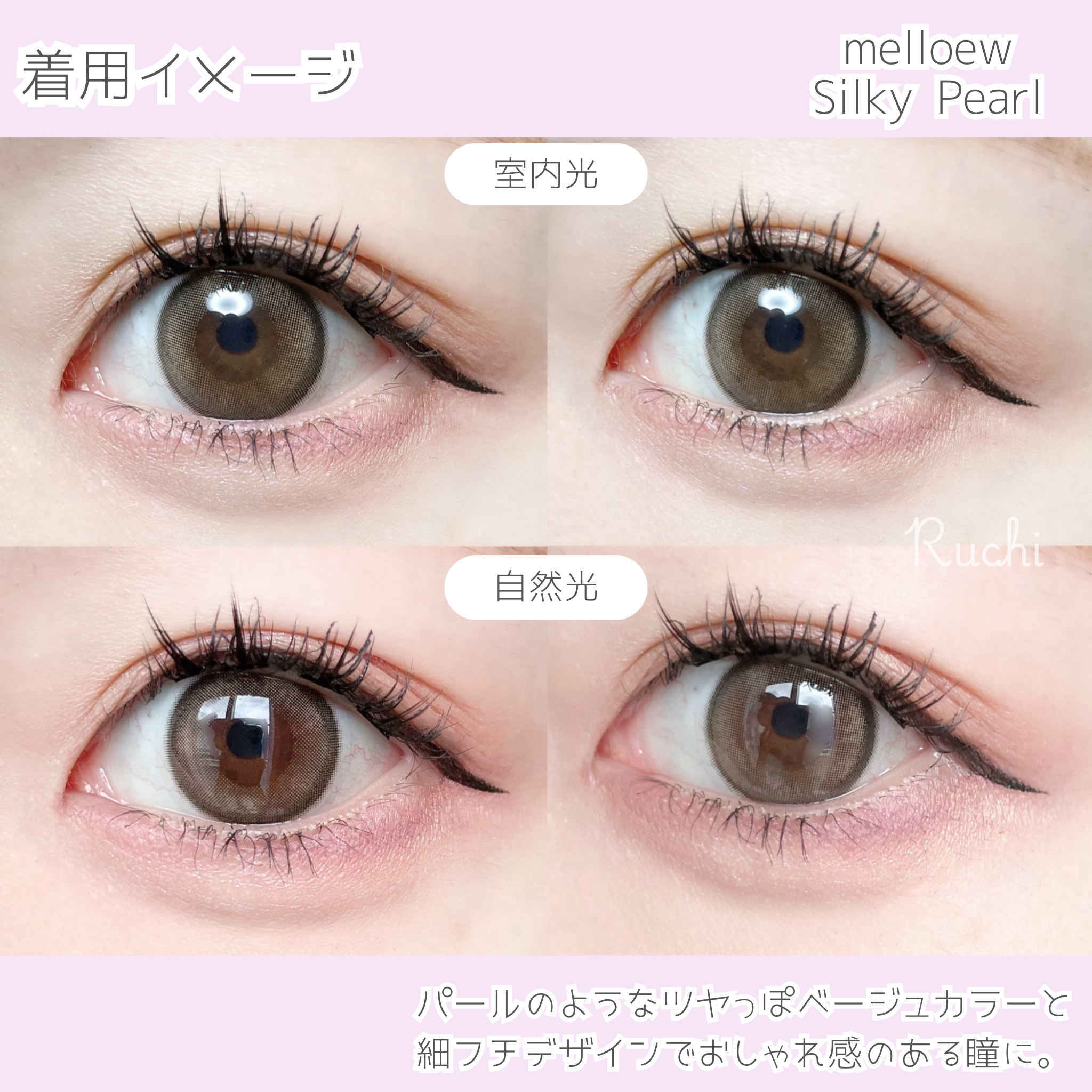 ▼ツヤっと洒落感のある瞳に👀💓【melloew/SilkyPearl】melloew(メロール)カラー:シルキーパール全7色/各1,485円(税込)《レンズスペック》使用期間:1dayレンズ直径(DIA):14.2mm着色直径(GDIA...