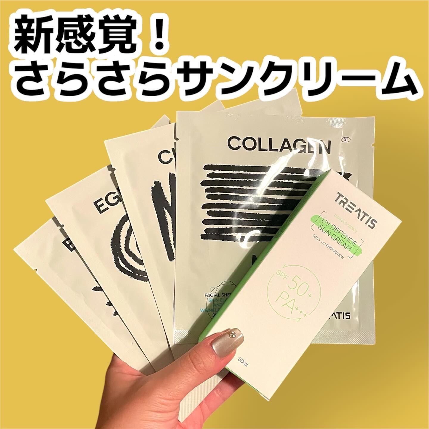 年中必須な日焼け止めとフェイスマスク◎ UVディフェンスサンクリームはメイクノリにも悪く影響しない、テカリやベタつきがない使いやすいものでした☺️👌🏻 フェイスマスクはコラーゲン→美白ケア・シワ改善、ブライトニング→ホワイトケア•エイジングケア、チャコール→肌荒れ、EGF-ペプタイド→肌再生促進 ...と、みんなが求めてるものがギュッと詰まった4種があります。 私はブライトニングとペプタイドが長く使いたいパックですね✌🏻♡