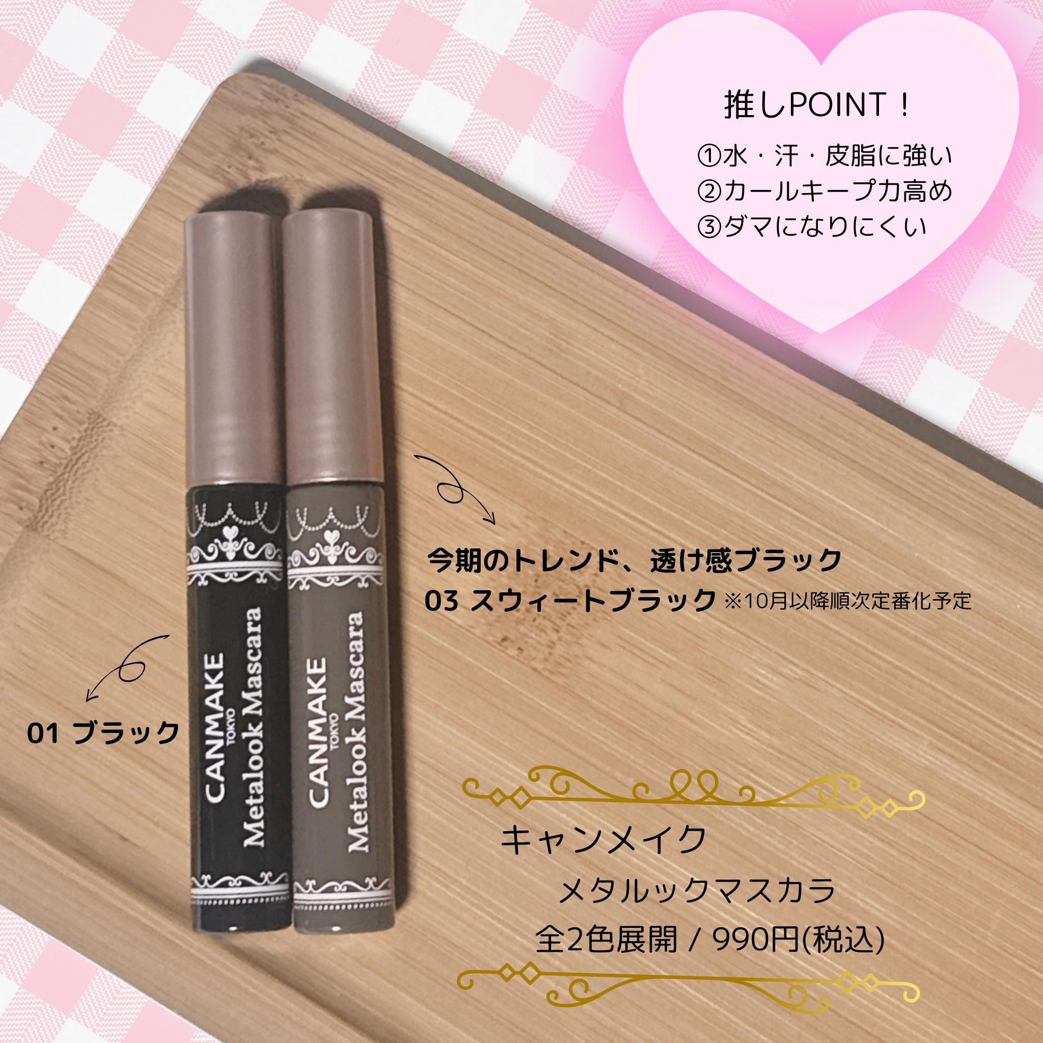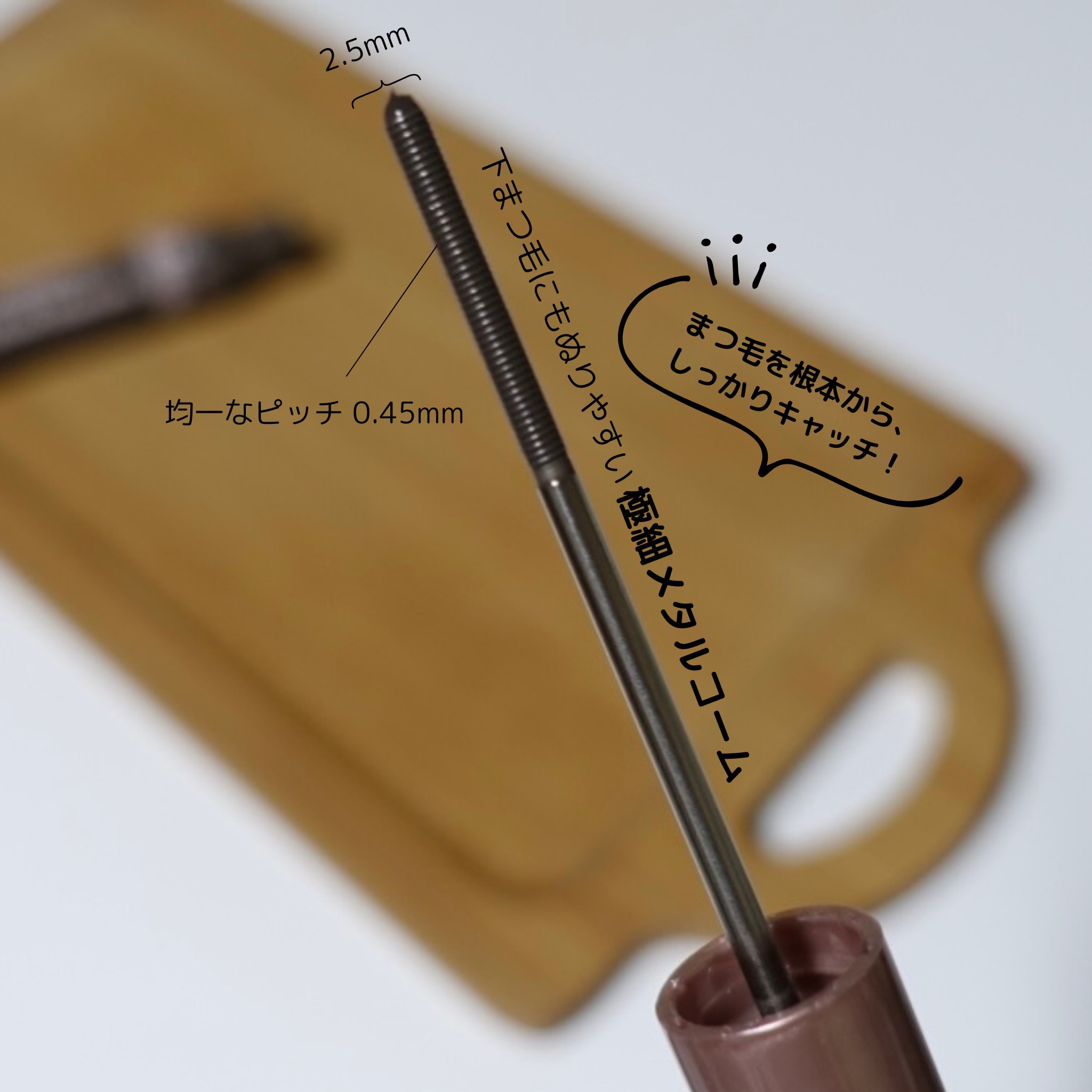 - 01 ブラックは2024年4月以降順次定番化! メタルコームが塗りやすい♡ 自分好みの束感がつくれるマスカラ 流行りの束感まつげ、今日はどのルックにする? ♡繊細な束感をつくるための極細メタルコーム 束感のあるまつげをつくるために設計された均一なピッチが、 程よく数本のまつげを束ねます。 届きにくい目頭や目尻のまつげも塗りやすい! ♡重ね塗りで自分好みの束感に なめらかな液がまつげに均一につくので、 重ね塗りをしてもダマになりにくい! 繊細でナチュラルな束感~盛り束感まで、これ1本で自由自在♪