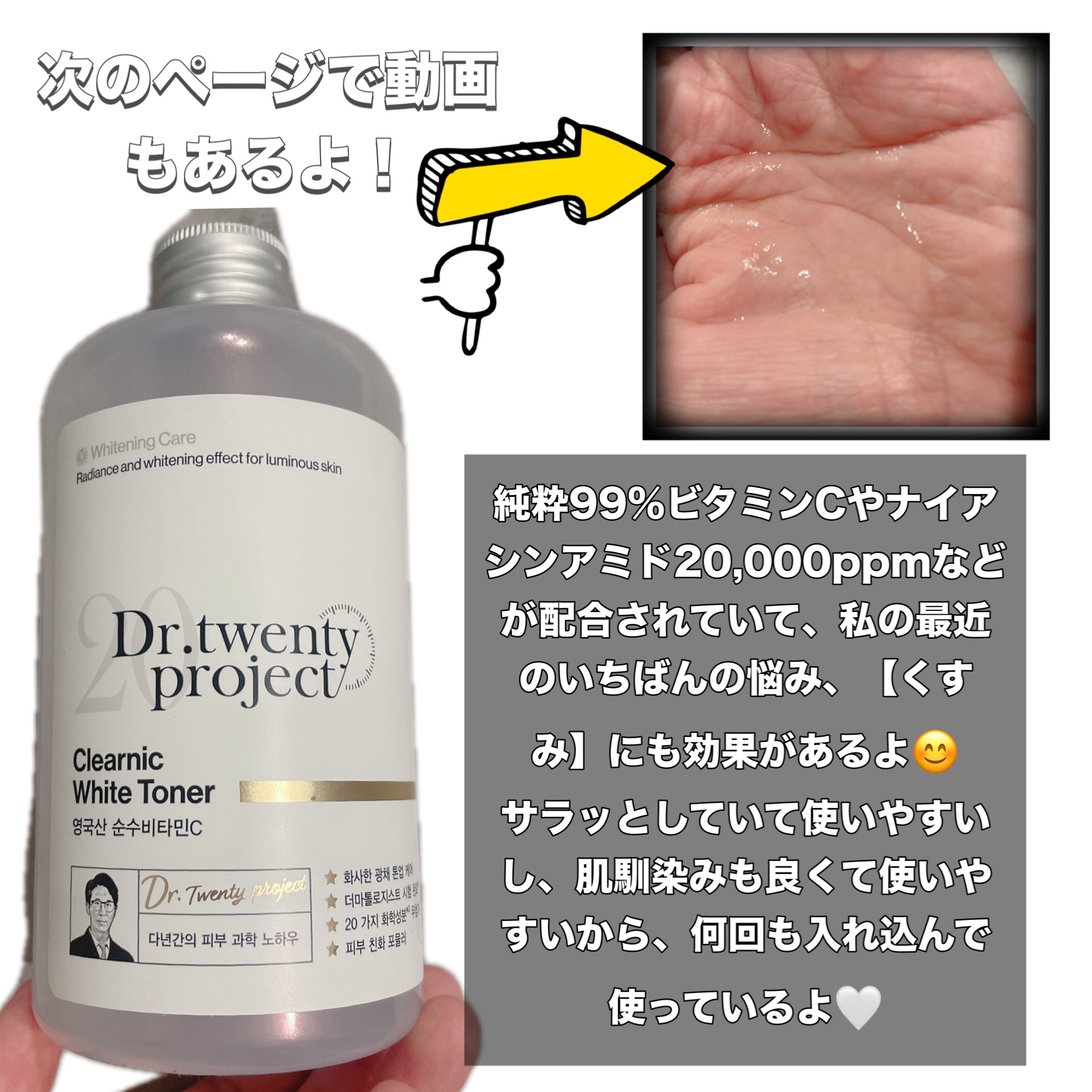 Dr.twentyprojectクリアニックホワイトトナー提供頂きました✨☑︎純度99%イギリス産ビタミンC、ナイアシンアミド、3つのビタミン誘導体が配合☑︎韓国の食品医薬品安全処で肌美白に効果があると認められた機能性化粧品☑︎肌への心配な2...