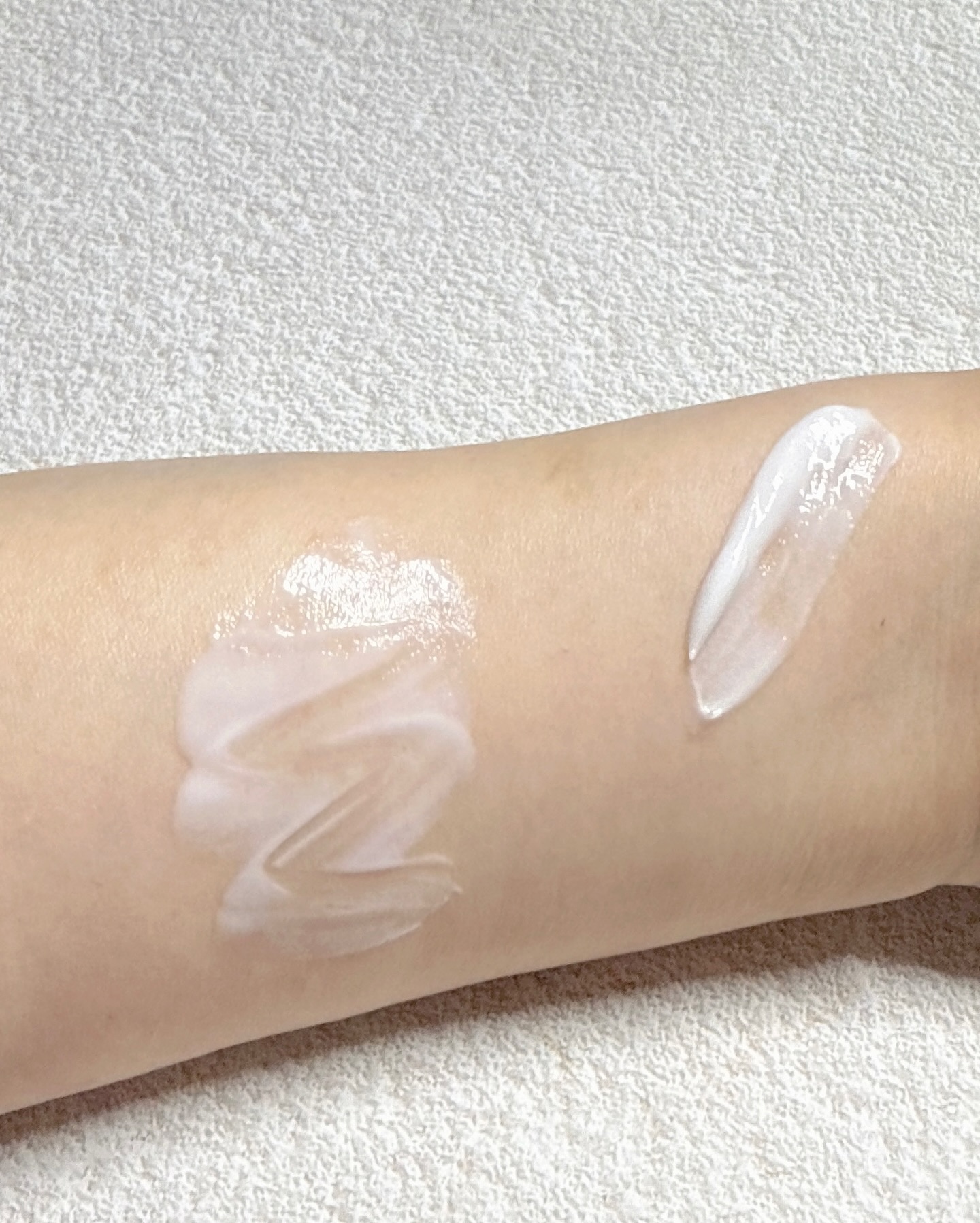 テクスチャーはサラサラだけど、飛び散るわけではなくて吸い付いてくる感じでした。 グリッターは、湿式のウェットさと押すとムニっとして、ちょっとゼリーテイストな気がします。ギラギラすぎなくて使いやすかったです。 ⑥はピンクも混ざっていてとても可愛い。アイスクリーム屋さんのストロベリーチーズケーキみたいな🍓これも、白すぎなくて肌馴染みの良い白系なので使いやすかったです。