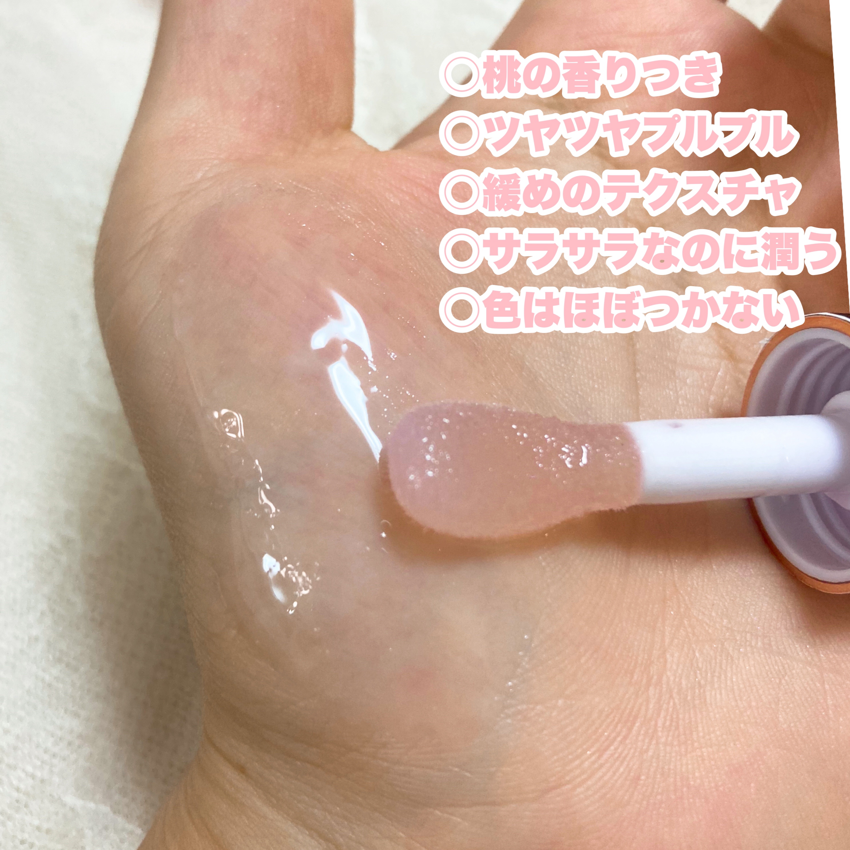 | ちゅるんとしたテクスチャで唇にのせるとさらっと仕上がり、 ベタつかないし塗ってて嫌な感じもしないのに潤いはある! | 詳細を見る | ||