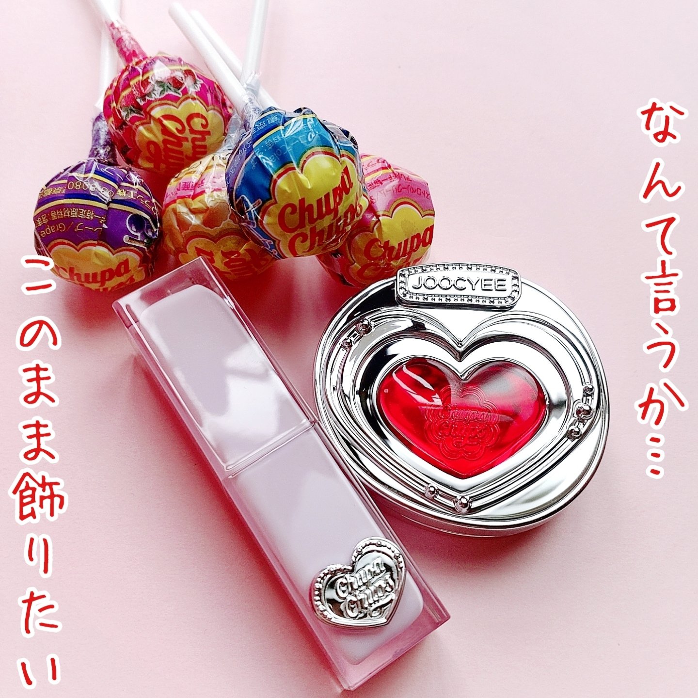 このコラボは本気でズルすぎん?? JOOCY✕Chupa Chups [Sweet Heart]シリーズ Qoo10で一目惚れして完全パケ買い😍 ※()内の商品名はサイトごとに微妙に違っています…😅 可愛すぎて使えないのでしばらく観賞用になりそうです✨️ メッチャ使いたいという気持ちもあるんですがね💦