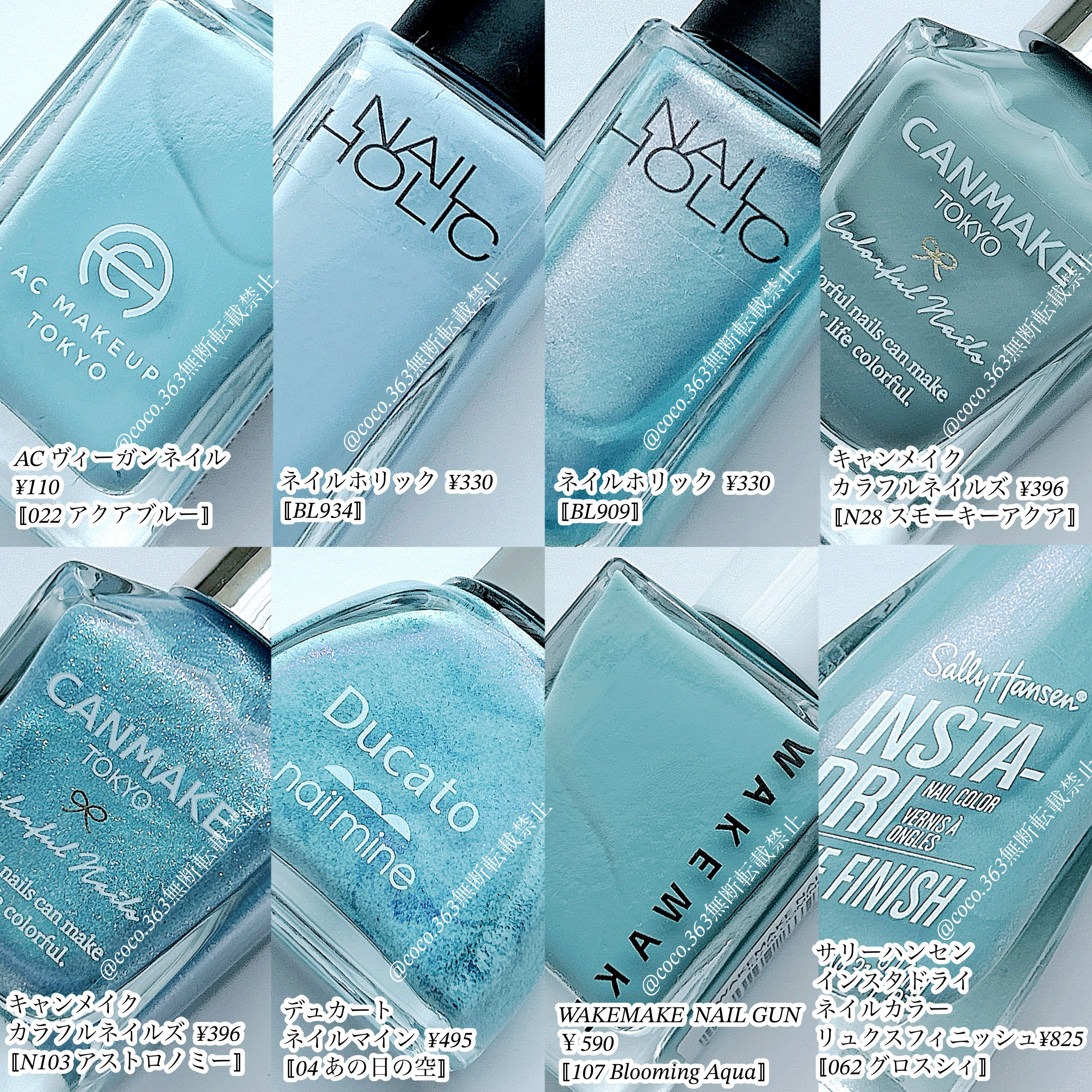 N28 スモーキーアクア N44 シックグレー N52 マーメイドスケール N57 インディゴブルー N82 クラウドレススカイ N85 9PMは以前の限定ですが amazon等のECサイトで 定価で購入できるので 気になる方はぜひ🫶🏻