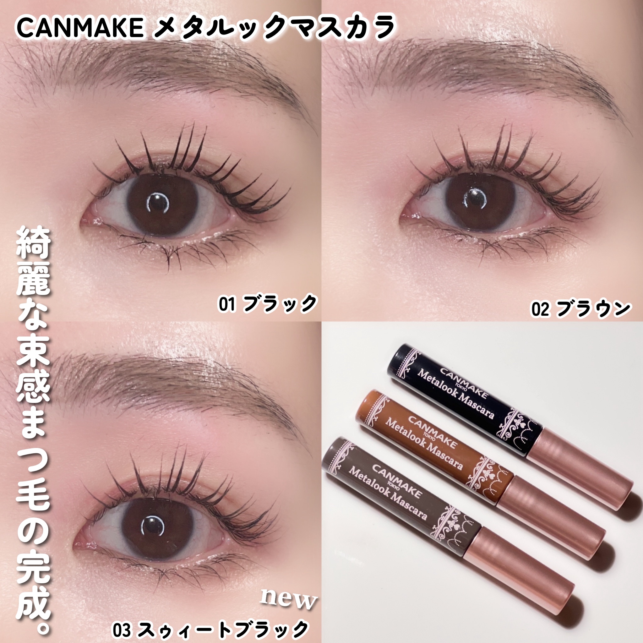 - 01 ブラックは2024年4月以降順次定番化! メタルコームが塗りやすい♡ 自分好みの束感がつくれるマスカラ 流行りの束感まつげ、今日はどのルックにする? ♡繊細な束感をつくるための極細メタルコーム 束感のあるまつげをつくるために設計された均一なピッチが、 程よく数本のまつげを束ねます。 届きにくい目頭や目尻のまつげも塗りやすい! ♡重ね塗りで自分好みの束感に なめらかな液がまつげに均一につくので、 重ね塗りをしてもダマになりにくい! 繊細でナチュラルな束感~盛り束感まで、これ1本で自由自在♪