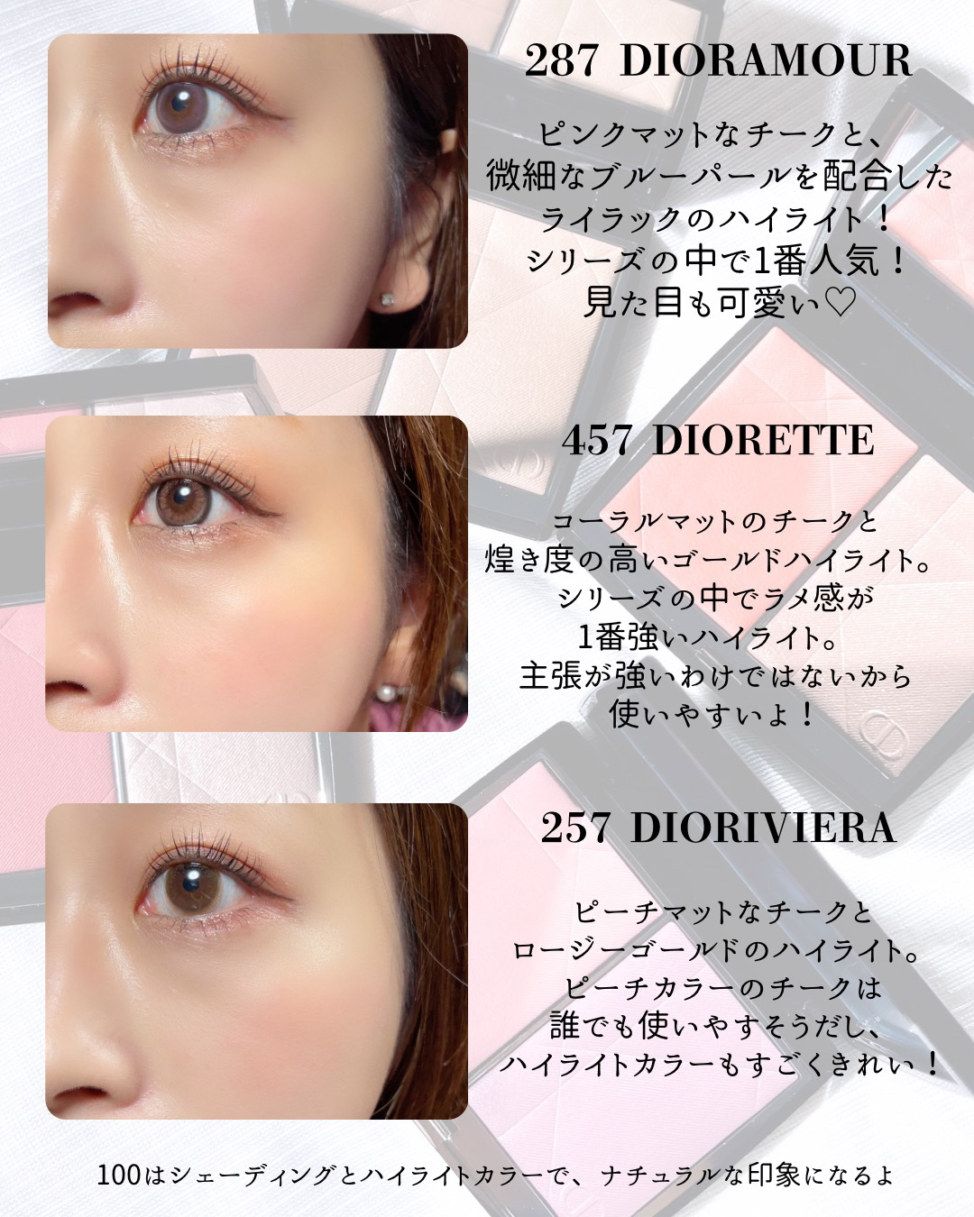 DIOR様ならではの高級感を感じられる一品となっております🙏 黄みと青みの中間、ニュートラルなピンクが”チークカラー” ブルベ夏に1番ハマると思いますが 一部イエベ春やブルベ冬もいけそう🤝 個人的に自分のパーソナルカラーに合いすぎていて 肌が最高に綺麗に見えて大満足🥹