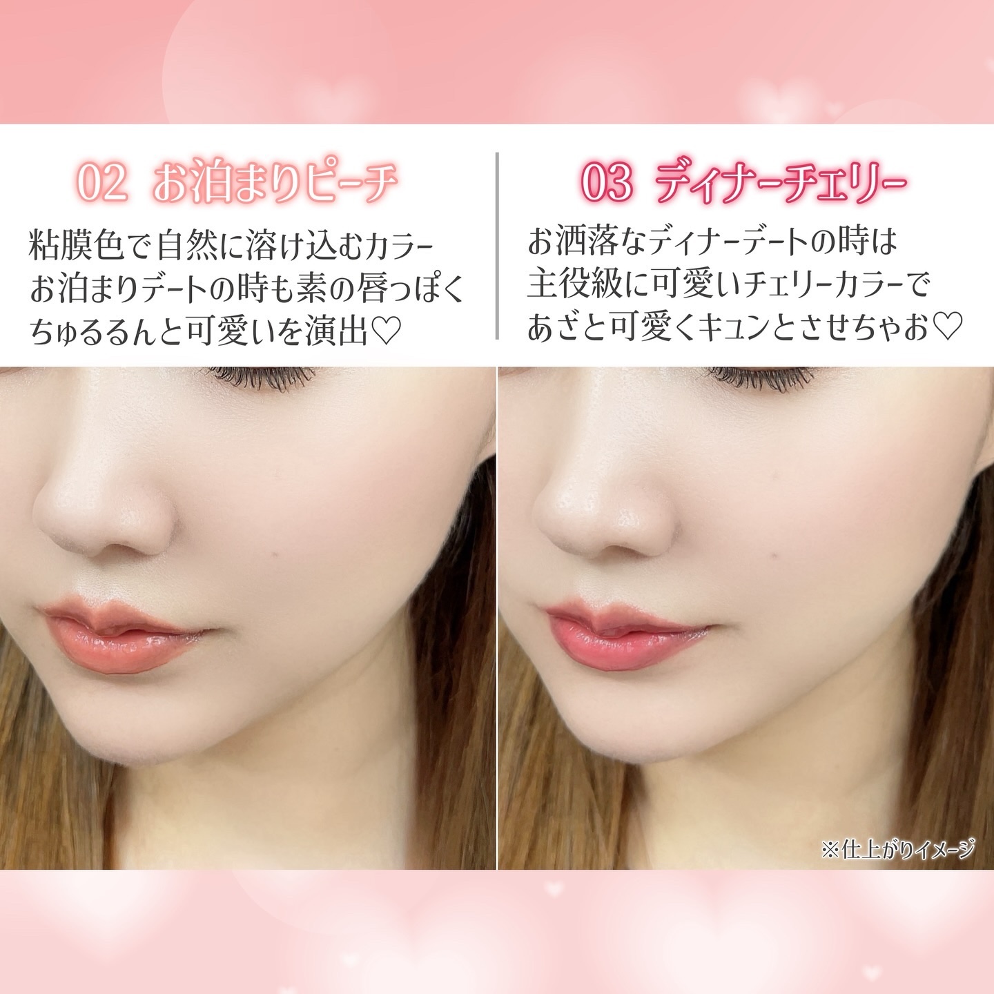 - 【重ねて塗って、唇だけで虜にする。】 むっちりぷっくり*1艶リップを演出♥ 24SS新定番発売! 「スキンケア感覚の艶グロス」 “ちゅるるんグロス” ラップパック×美容成分配合*2×潤いを閉じ込める こっくり系テクスチャーでぷっくりツヤツヤ。 美容成分がたっぷりで、ぴったり密着ラッピング。 乾燥から唇を保護します。 ぽってり*1♡うるちゅるな唇を演出。 ♥「01 ヌードスキン」うるうるしながら、可愛く守る。 *1 メイク効果による *2 シア脂、ツバキ種子油、カニナバラ果実油、セラミドNP、ティーツリーエキス、ヒアルロン酸Na、ツボクサエキス(全て保湿成分) うるうるしながら、可愛く守る。 スキンケア感覚の艶グロス。