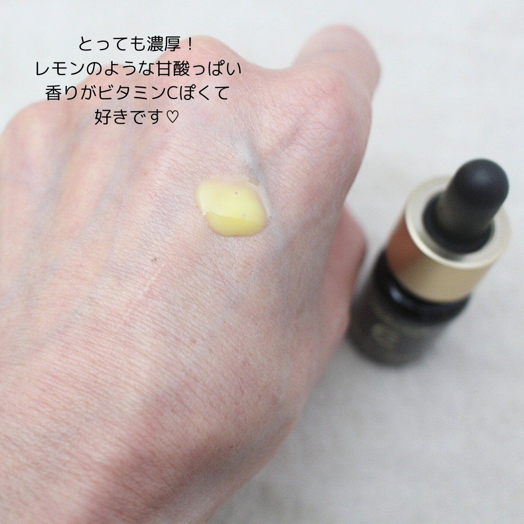 - 高濃縮のピュアビタミンC*やグルタチオン*をたっぷり配合した美容液です。 べたつかないテクスチャーで肌を保湿し、ツヤのある美肌に導きます。 ☑ピュアビタミンC* 145,000ppm配合 ☑独自整肌成分MELA-FADE ☑ナチュラルビタコンプレックス:カムカムの実エキス*・ビタミンツリーウォーター*・カカドゥプラムエキス*配合 ☑ビタミンの鮮度を維持するため、茶色の瓶3本に小分けしたパッケージを採用 ☑肌の角質層により浸透されやすい、こだわりのpH濃度(pH4.0以下)に設定 ☑乾燥によるくすみケア/弾力ケア/保湿ケア/肌キメケア 化粧水などでお肌を整えたあと、適量を取り、お肌のキメに沿ってまんべんなく塗った後、やさしくなじませます。 * 保湿成分 ■お肌に異常が生じていないかよく注意してご使用ください。化粧品がお肌に合わないとき即ち次のような場合には、使用を中止してください。そのまま使 用を続けますと、症状を悪化させることがありますので、皮膚科専門医等にご相談されることをおすすめします。また、傷やはれもの、しっしん等の異常が ある部位には、ご使用にならないでください。 (1)使用中、赤み、はれ、かゆみ、刺激、色抜け(白斑等)や黒ずみ等の異常があらわれた場合 (2)使用したお肌に、直射日光があたって上記のような異常があらわれた場合 ■目に入らないようご注意ください。目に入ったときは、こすらずにすぐに洗い流してください。その後、目に異常が残る場合は、眼科専門医へご相談され ることをおすすめします。 ■極端に高温又は低温の場所、低湿、高湿の場所、直射日光のあたる場所には保管しないでください。 ■衣類につくと、しみになることがございますのでご注意ください。 ■乳児、子供の手の届かない所に保管してください。