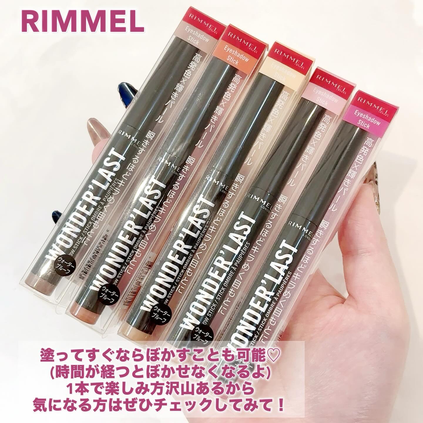1本でベースにも涙袋にも使える! RIMMEL新作のスティックアイシャドウとなっています。 ひと塗りで、高発色×パール感のキラめく目もとが瞬時につくれてしまうアイシャドウスティック! スラスラ、ノンストレスで描けるのがGOOD! パール感は細かく、目元が煌めきながらも主張が強過ぎないのも良い。