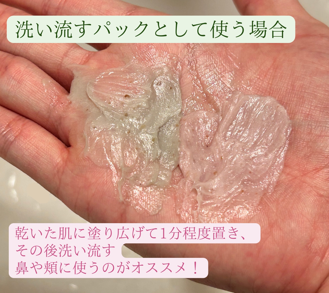 ピンクとアロエ色、またホイップしたような見た目がとっても可愛いです。 テクスチャーはふわふわしっとりなめらか。なめらかに伸びて、優しくなじませることが出来ます。 肌が食べる新感覚メレンゲクレンザー! やわらかい濃度で埋め尽くし、毛穴の隙間まで完璧に皮脂・老廃物・黒ずみを吸着。 保湿成分と自然クーリンク成分で使用後の毛穴引き締めまで。