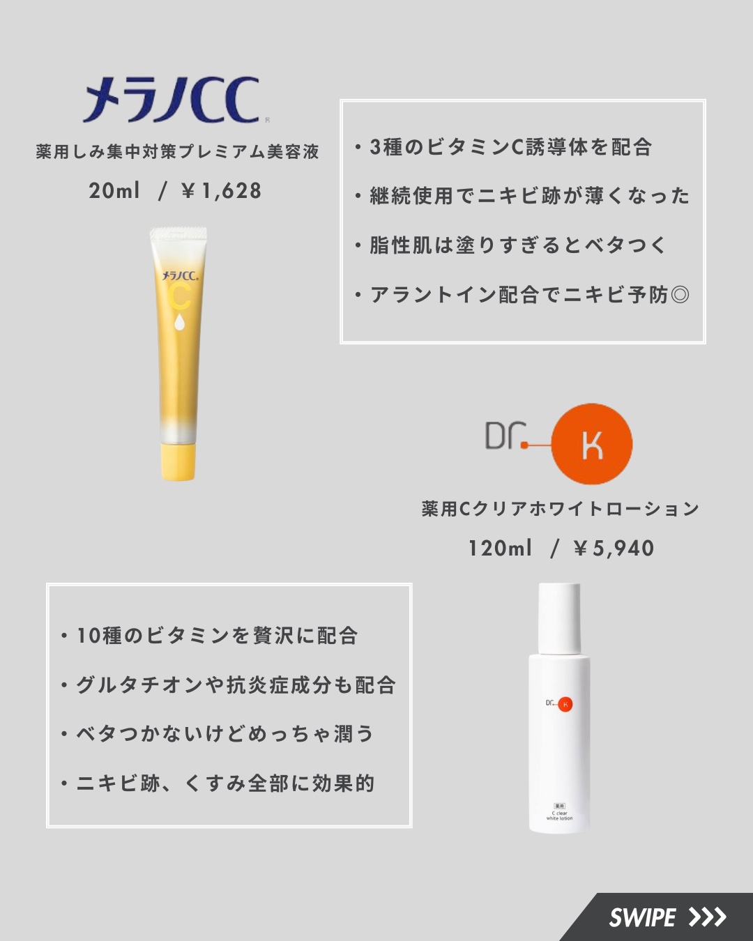 ニキビ跡には大きく分けて3種類あります 赤みのあるニキビ跡 色素沈着によるニキビ跡 今回紹介した美容液はビタミンCとナイアシンアミドが高配合されているので参考にしてみてください!😊