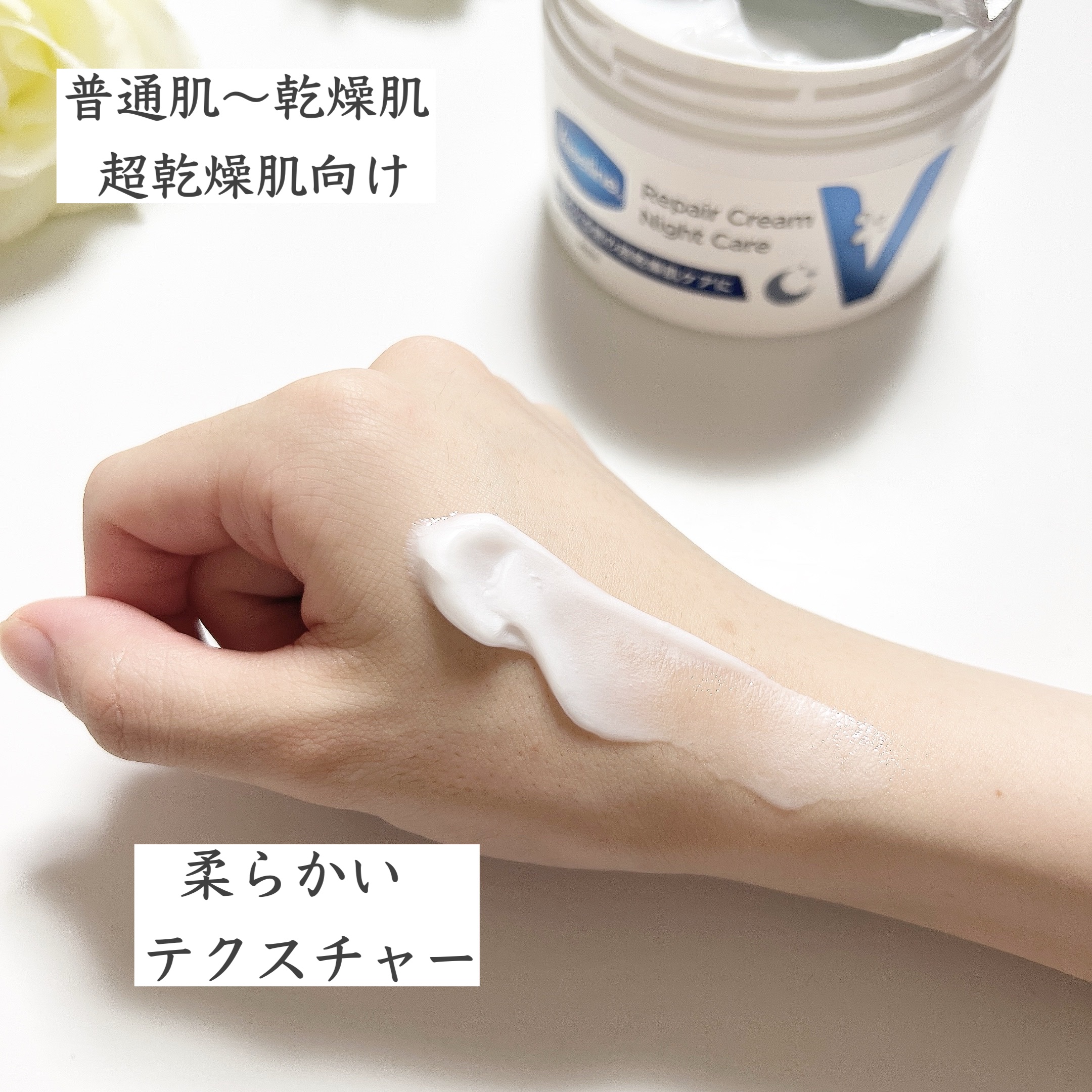 ヴァセリンから、超乾燥肌向けのナイトクリームが登場! レチノールや4種のヒアルロン酸配合。 べたつかずにスーッと肌になじむクリームが、超乾燥肌にも浸透し、うるおいを与えます。 朝まで潤ってすべすべ♪なんか膜がある感じじゃないのが私好みです🥰