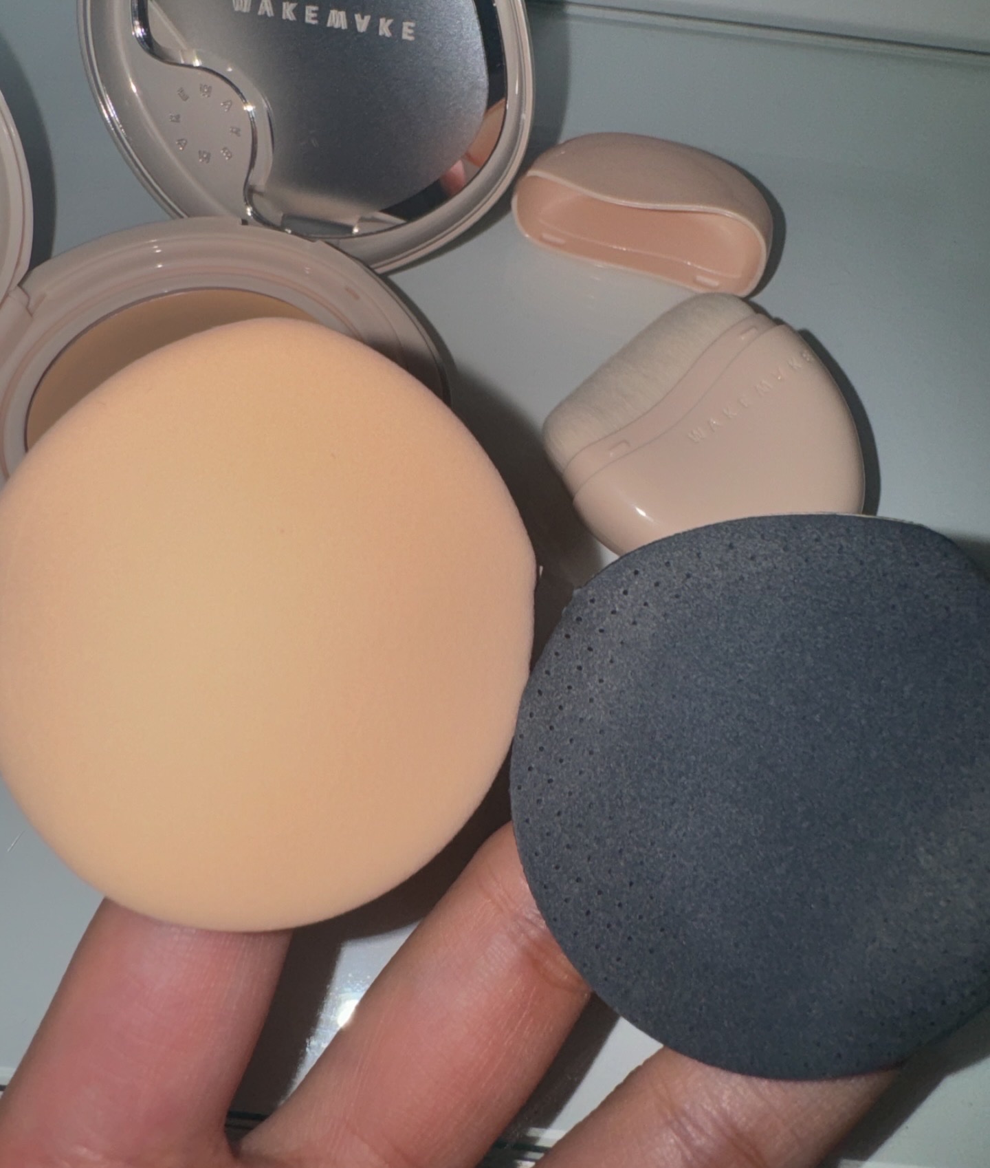 普段マット肌が大好きなのでツヤ肌系のもの買わないんですがWAKEMAKEのファンデーション大好きなのでこれは買わずにはいられなかった🤦🏻♀️💕 パフはもちもちふわふわなパフでずっと触ってたくなる🫣 肌がうるもちな感じで上からパウダーつけても自然なツヤ感で好きでした🫶🏻