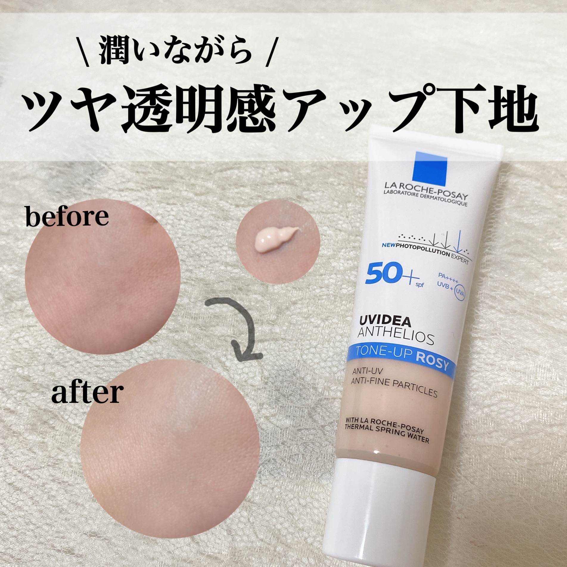 - 素肌のような透明感を演出するピンクのトーンアップUV*1。 光を乱反射し肌を綺麗に魅せるトーンアップテクノロジーを採用したトーンアップUVに、新色ローズが誕生。 肌なじみのよいピンクの色味で、澄んだ血色と上質なツヤのある素肌のような透明感肌*1を演出します。 SPF50+・PA++++の防御力で紫外線はもちろん、PM2.5を含む大気中微粒子*2などの外的要因から肌を守る独自のマルチプロテクションテクノロジーを搭載。 さらにエイジングケア*3を考えたスキンケア成分や、肌をやわらげ、肌本来のバリア機能(角層)をサポートする、ラ ロッシュ ポゼ ターマルウォーター(水:整肌成分)配合。 低刺激設計*4 石鹸で落とせます。 *1 メイクアップ効果による *2 物理的な肌の付着からの防御。すべての大気中物質をさすわけではありません *3 年齢に応じたうるおいを与えるケア *4 すべての人に皮膚刺激がおきないわけではありません。