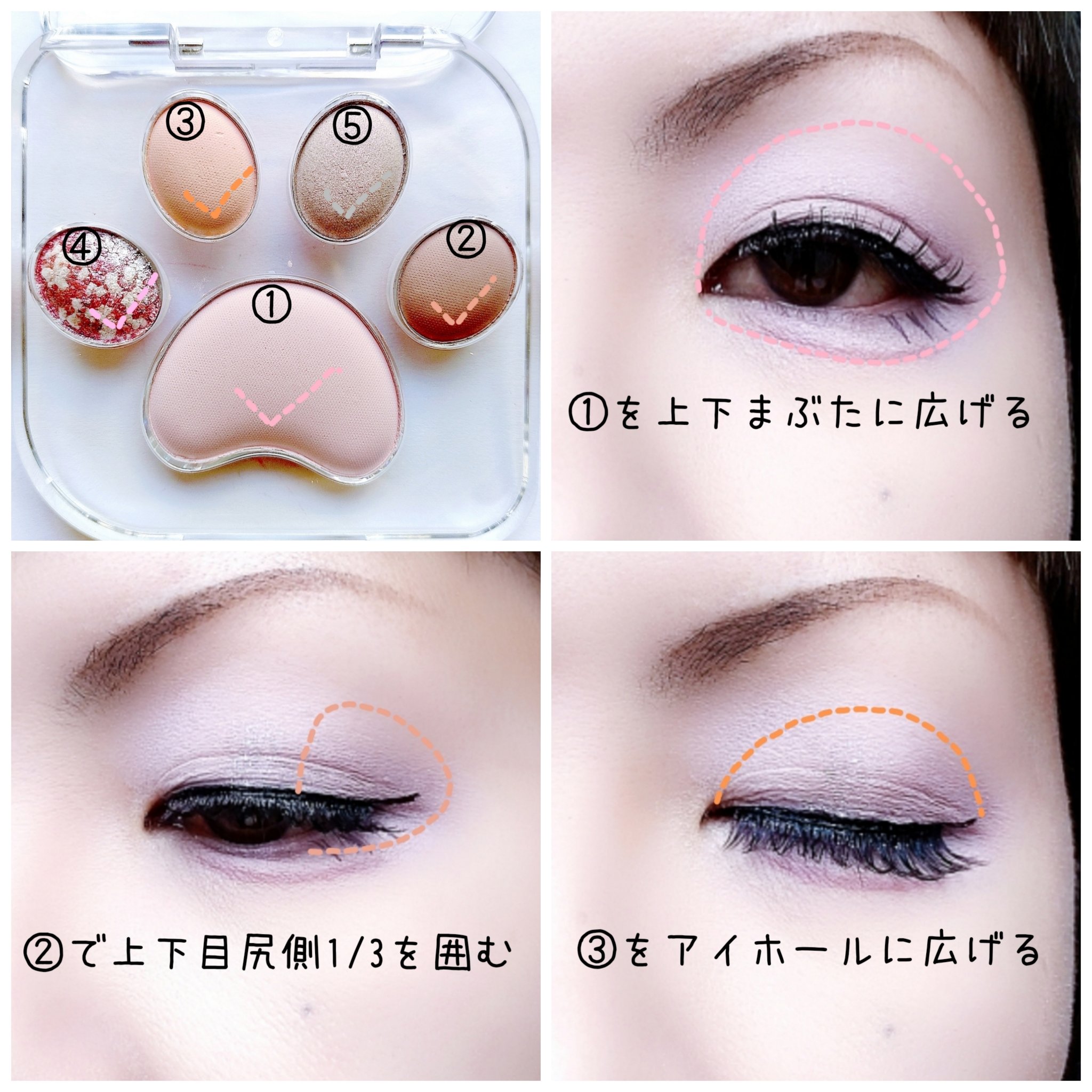 ベースカラー、締め色、ラメがそろったかわいい5色パレット💕 見た目の可愛さだけじゃなくて機能性も◎❣️ 発色が想像以上に良くて見たままのカラーでメイクできるのが楽しい♥️ 気まぐれ猫ちゃんのような女の子におすすめ🐱ฅ