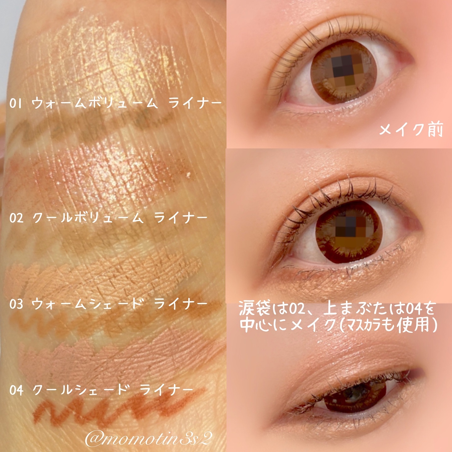 - 【01 ウォームボリュームライナー】 シャドウ:コチニール(カルミン)を使用しています。 【シャドウ】ジメチコン、フェニルトリメチコン、トリメチルシロキシケイ酸、合成ワックス、ステアリルジメチコン、マイクロクリスタリンワックス、テトライソステアリン酸ペンタエリスリチル、合成フルオロフロゴパイト、キャンデリラロウ、ホウケイ酸(Ca/チタン)、ホウケイ酸(Ca/Al)、シリカ、ジステアルジモニウムヘクトライト、フェノキシエタノール、イソステアリン酸ソルビタン、酢酸トコフェロール、炭酸プロピレン、酸化スズ、マイカ、酸化チタン、酸化鉄、カルミン 【ライナー】メチルトリメチコン、トリメチルシロキシケイ酸、ホホバ種子油、合成ワックス、マイクロクリスタリンワックス、ジメチコン、合成フルオロフロゴパイト、酸化鉄、シリカ、オクチルドデカノール、ポリブテン、ジステアルジモニウムヘクトライト、ポリヒドロキシステアリン酸、フェノキシエタノール、酸化チタン 【02 クールボリュームライナー】 シャドウ:コチニール(カルミン)を使用しています。 【シャドウ】ジメチコン、フェニルトリメチコン、トリメチルシロキシケイ酸、ホウケイ酸(Ca/チタン)、ホウケイ酸(Ca/Al)、合成ワックス、ステアリルジメチコン、マイクロクリスタリンワックス、テトライソステアリン酸ペンタエリスリチル、シリカ、キャンデリラロウ、ジステアルジモニウムヘクトライト、フェノキシエタノール、イソステアリン酸ソルビタン、酢酸トコフェロール、炭酸プロピレン、酸化スズ、マイカ、酸化チタン、酸化鉄、カルミン 【ライナー】メチルトリメチコン、トリメチルシロキシケイ酸、ホホバ種子油、合成ワックス、合成フルオロフロゴパイト、マイクロクリスタリンワックス、ジメチコン、シリカ、酸化鉄、オクチルドデカノール、ポリブテン、ジステアルジモニウムヘクトライト、ポリヒドロキシステアリン酸、フェノキシエタノール、酸化チタン 【03 ウォームシェードライナー】 【シャドウ】メチルトリメチコン、フェニルトリメチコン、トリメチルシロキシケイ酸、合成ワックス、ステアリルジメチコン、オクチルドデカノール、酸化鉄、キャンデリラロウ、ポリプロピルシルセスキオキサン、ジステアルジモニウムヘクトライト、合成フルオロフロゴパイト、シリカ、(エチレン/プロピレン)コポリマー、フェノキシエタノール、水酸化Al、セスキオレイン酸ソルビタン、トリエトキシカプリリルシラン、酢酸トコフェロール、トリ(カプリル酸/カプリン酸)グリセリル、メチコン、マイカ、酸化チタン 【ライナー】メチルトリメチコン、トリメチルシロキシケイ酸、ホホバ種子油、合成ワックス、マイクロクリスタリンワックス、ジメチコン、合成フルオロフロゴパイト、酸化鉄、シリカ、オクチルドデカノール、ポリブテン、ジステアルジモニウムヘクトライト、ポリヒドロキシステアリン酸、フェノキシエタノール、酸化チタン 【04 クールシェイドライナー】 ライナー:コチニール(カルミン)を使用しています。 【シャドウ】メチルトリメチコン、フェニルトリメチコン、トリメチルシロキシケイ酸、合成ワックス、ステアリルジメチコン、オクチルドデカノール、酸化鉄、キャンデリラロウ、ポリプロピルシルセスキオキサン、ジステアルジモニウムヘクトライト、シリカ、(エチレン/プロピレン)コポリマー、フェノキシエタノール、水酸化Al、セスキオレイン酸ソルビタン、トリエトキシカプリリルシラン、酢酸トコフェロール、トリ(カプリル酸/カプリン酸)グリセリル、メチコン、マイカ、酸化チタン 【ライナー】メチルトリメチコン、トリメチルシロキシケイ酸、ホホバ種子油、合成ワックス、マイクロクリスタリンワックス、合成フルオロフロゴパイト、ジメチコン、酸化鉄、シリカ、オクチルドデカノール、ポリブテン、ジステアルジモニウムヘクトライト、ポリヒドロキシステアリン酸、フェノキシエタノール、酸化チタン、カルミン