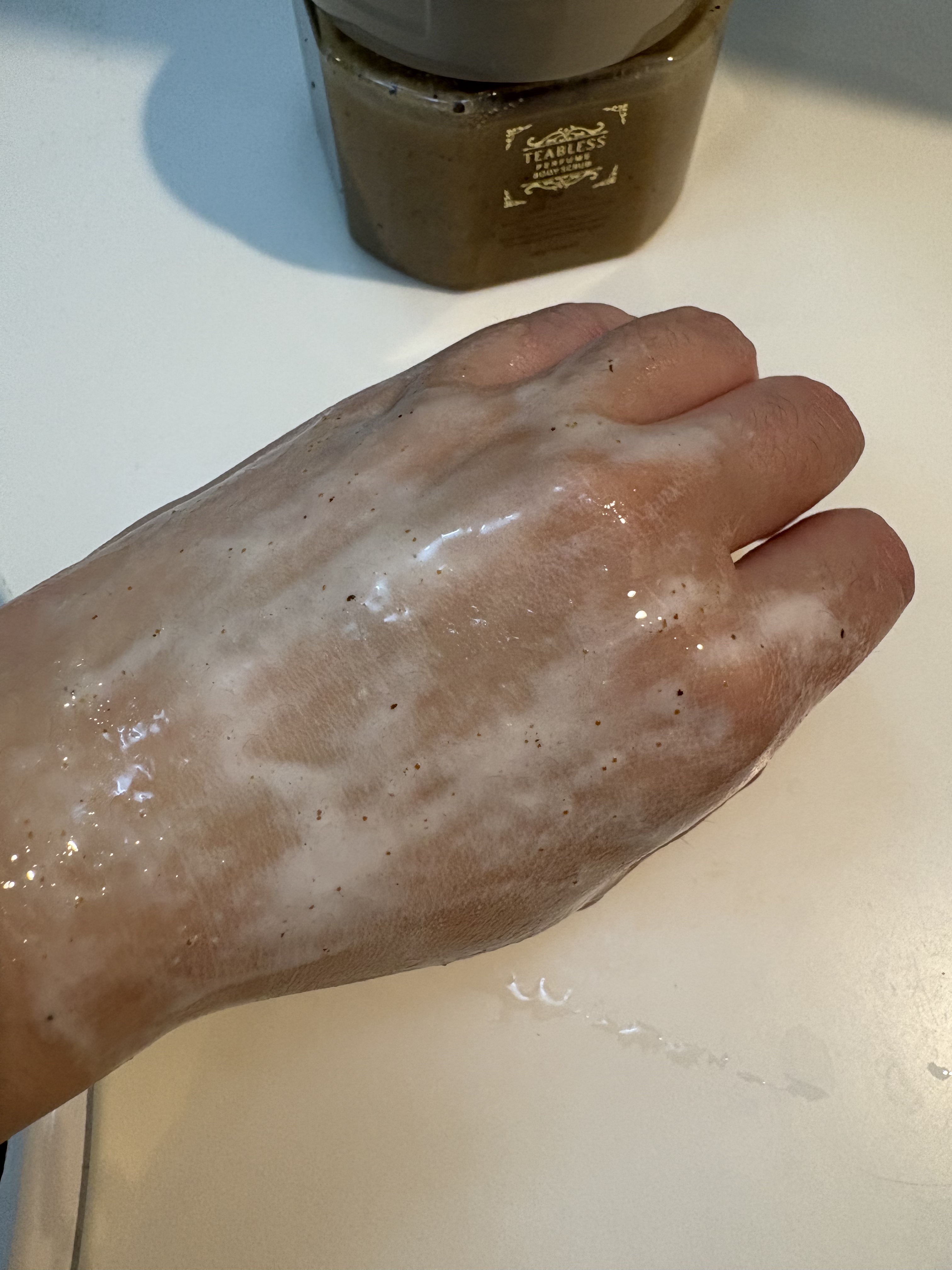 TEABLESSアールグレイティージャム・ボディスクラブ スクラブ&ボディソープがこれ1本でOK✧*。良い香りに癒されながらバスタイムを𓂃🛁Point𓂃⧉☑︎乾いた肌にはスクラブとして不純物&角質をケア。水に触れるとふわっと泡立...