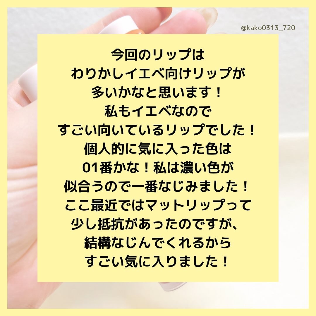 リップっていろんな種類があるけど、デイリー使いできるようなリップって何かなぁ… なるべく1本で済ませたいけど… イエベブルベ関係ない、デイリー使い出来るリップをご紹介します! このアカウントは一重女子の私がコスメやスキンケアなどを発信しています☆